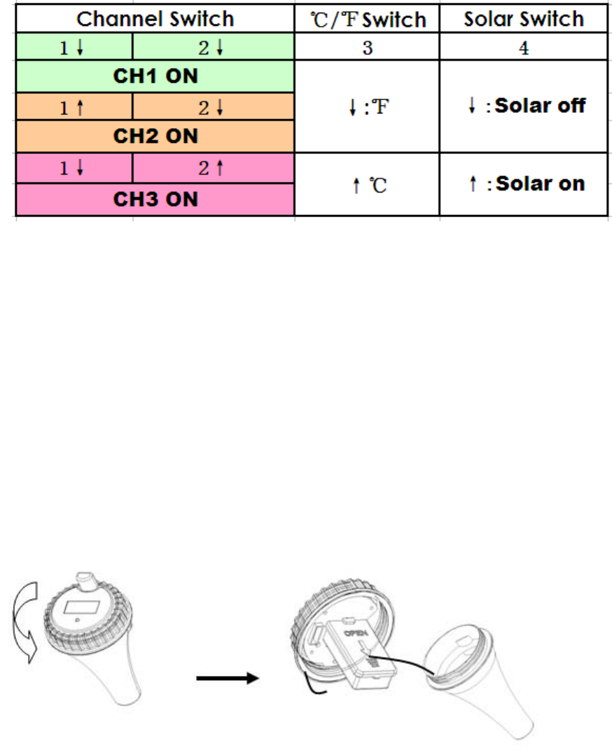 Taking the following chart to set channel, temperature unit and turn