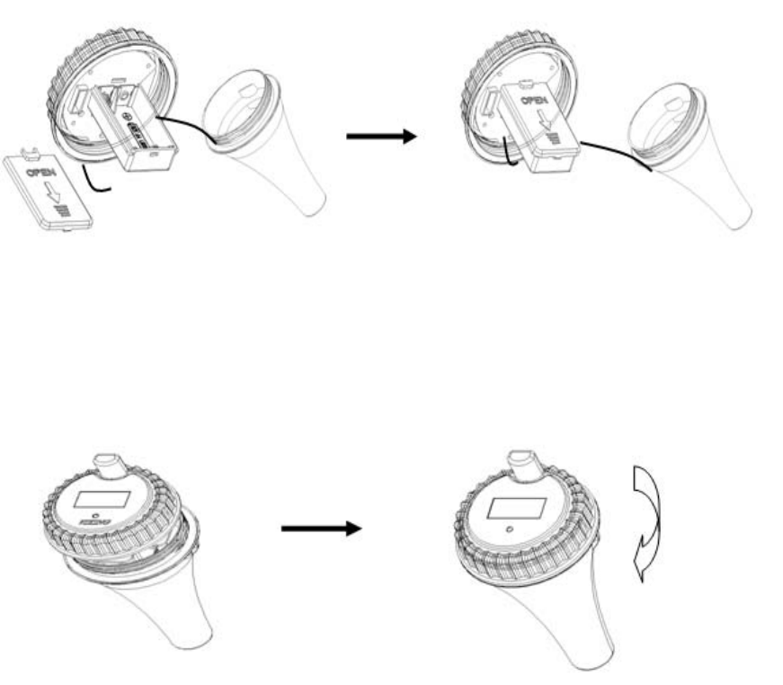 1. Twist off the cover of the transmitter, then take out the battery