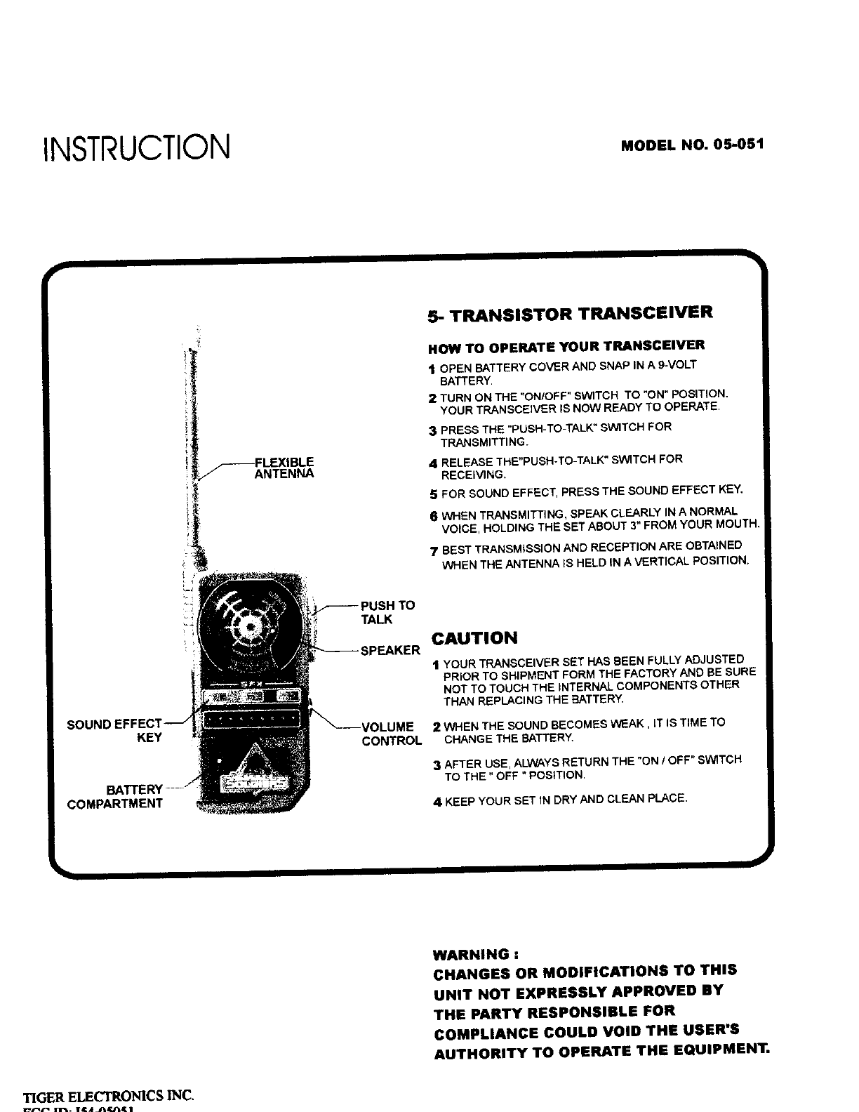 Tiger Electronics 05051 Toy Walkie Talkie User Manual 50575