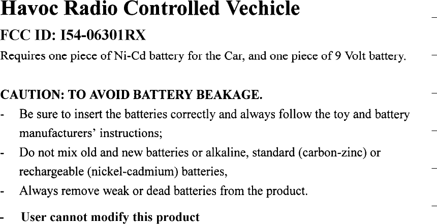 Tiger Electronics 06301RX Havoc Radio Controlled Vehicle User Manual Unknown
