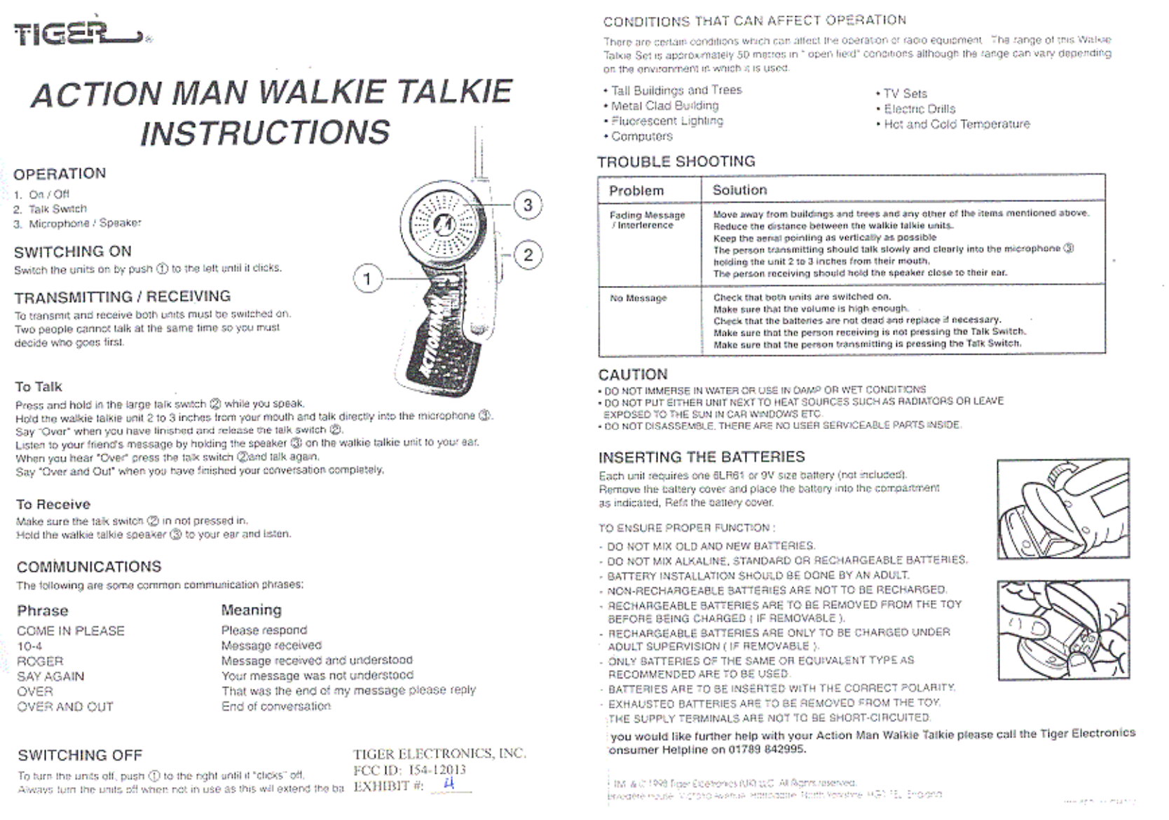 Tiger Electronics 12013 49 MHz Walkie Talkie User Manual instruction manual