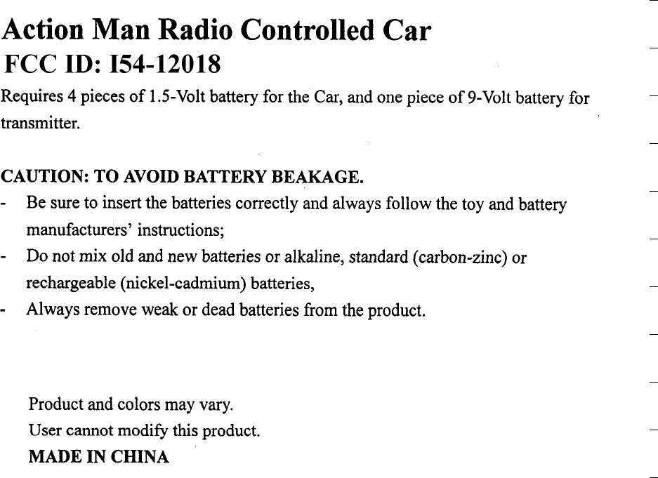 Tiger Electronics 12018 Toy Remote Control User Manual Unknown