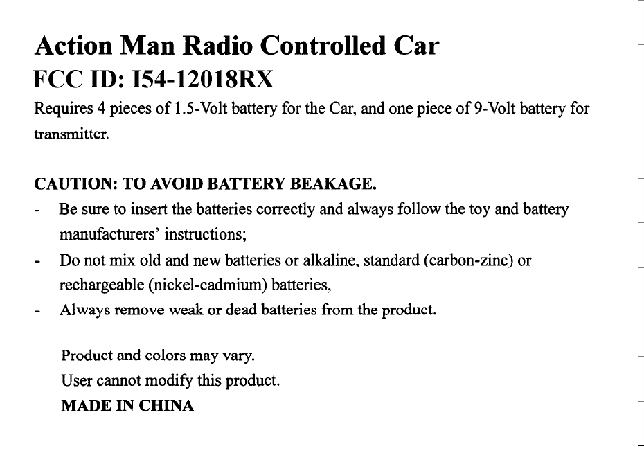Tiger Electronics 12018RX Action Man Radio Controlled Car User Manual Unknown
