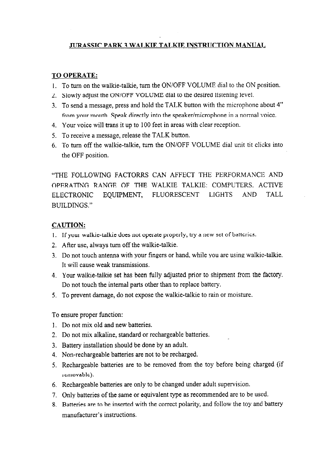 Tiger Electronics 200101440 Jurassic Park 3 Walkie-Talkie User Manual 4