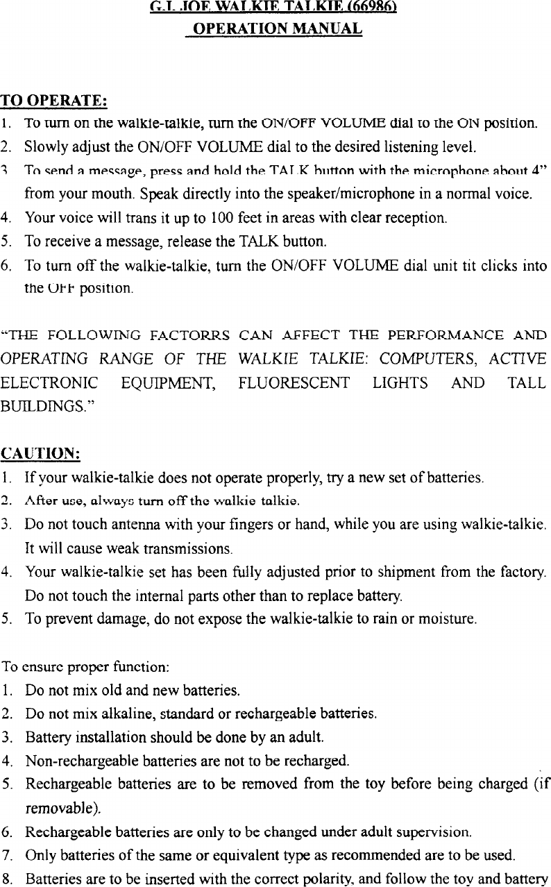 Tiger Electronics 66986 Walkie Talkie User Manual 18