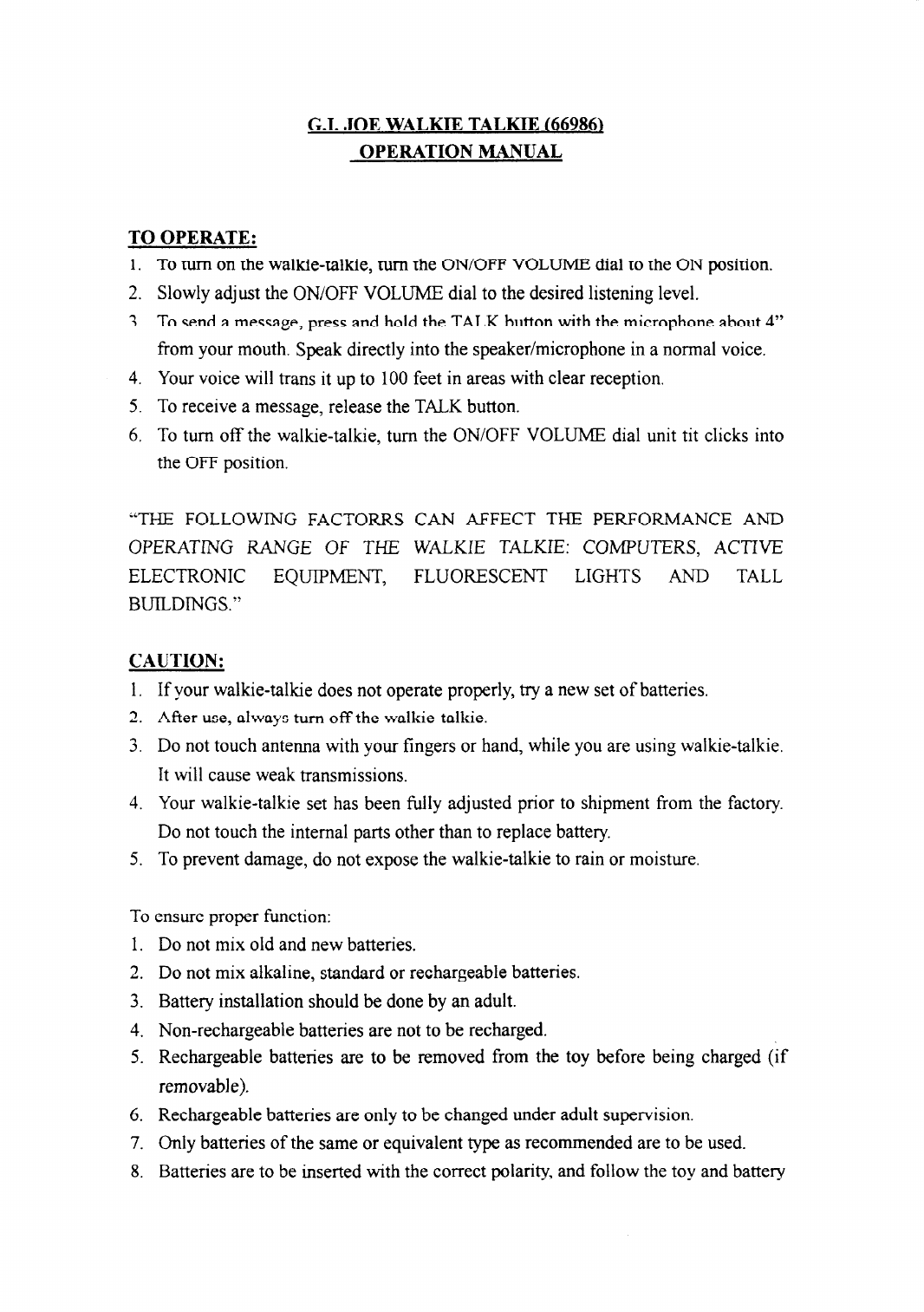 Tiger Electronics 66986 Walkie Talkie User Manual 18