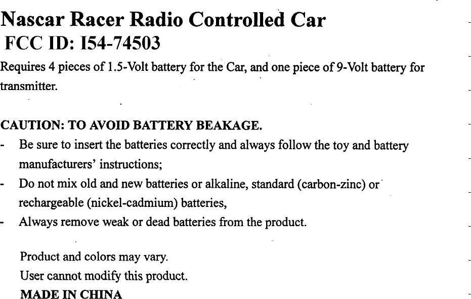 Tiger Electronics 74503 Toy Remote Control User Manual Unknown