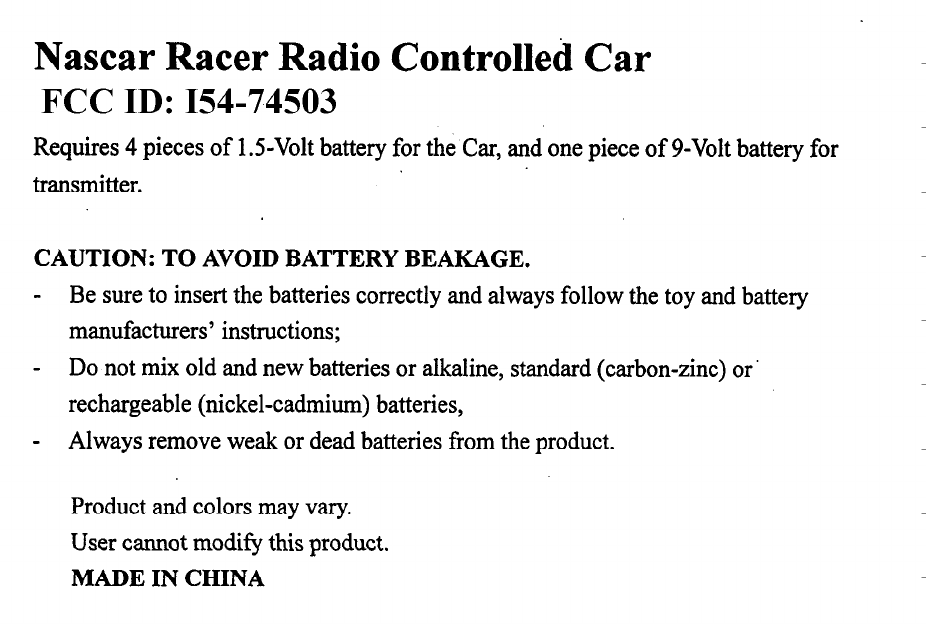 Tiger Electronics 74503 Toy Remote Control User Manual Unknown