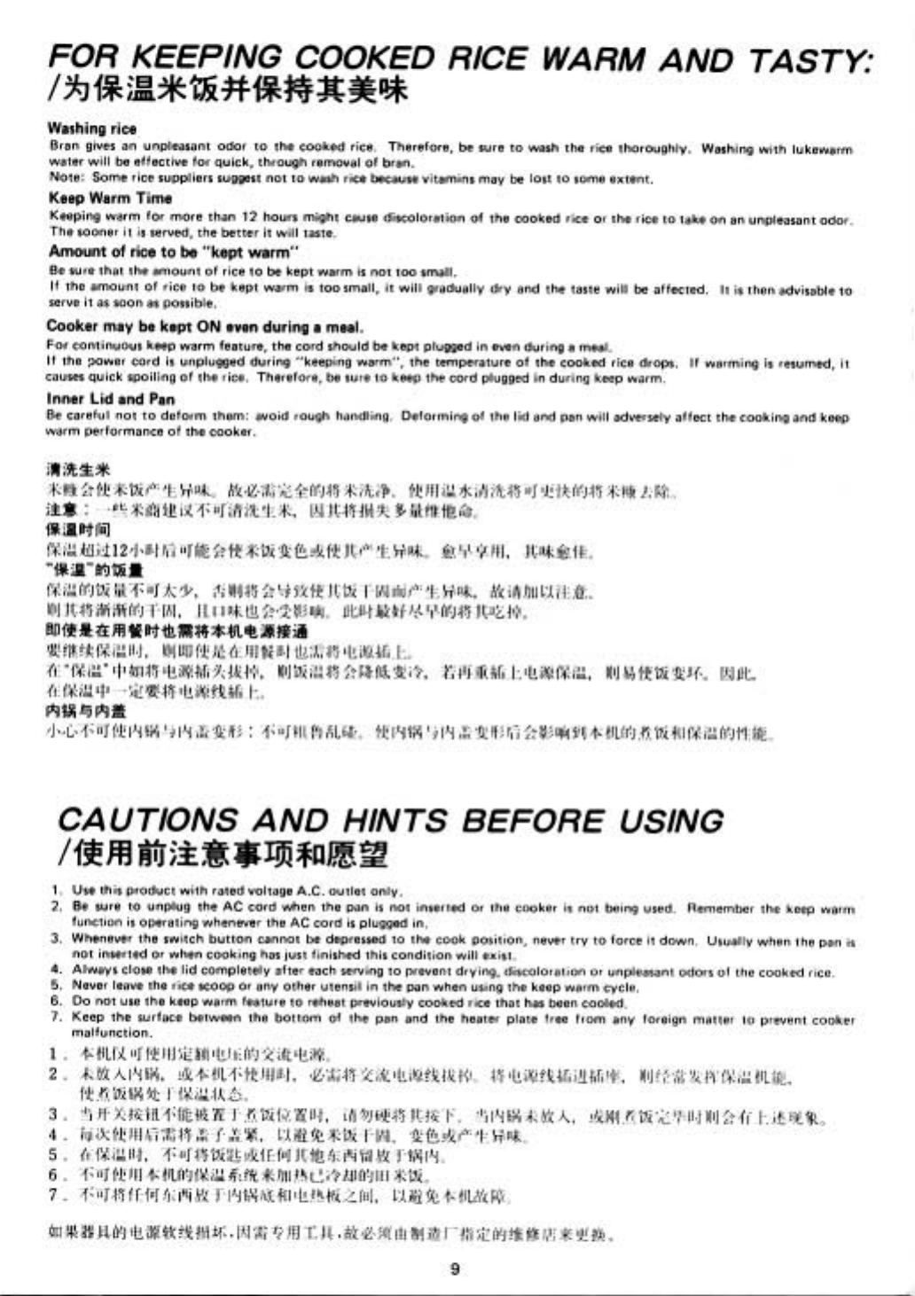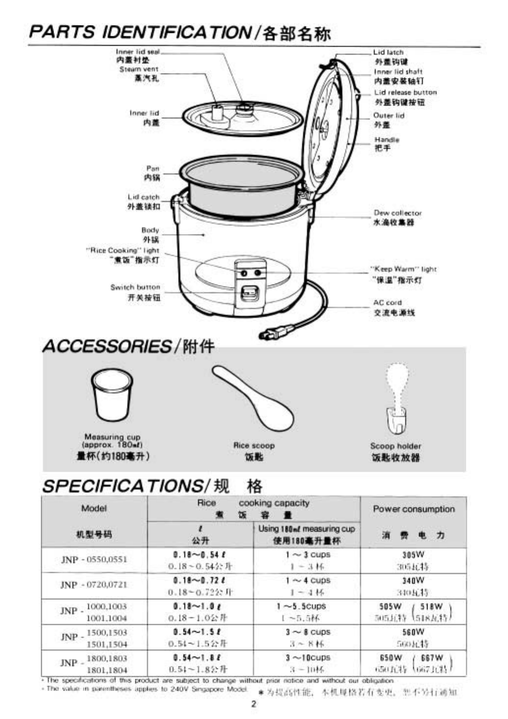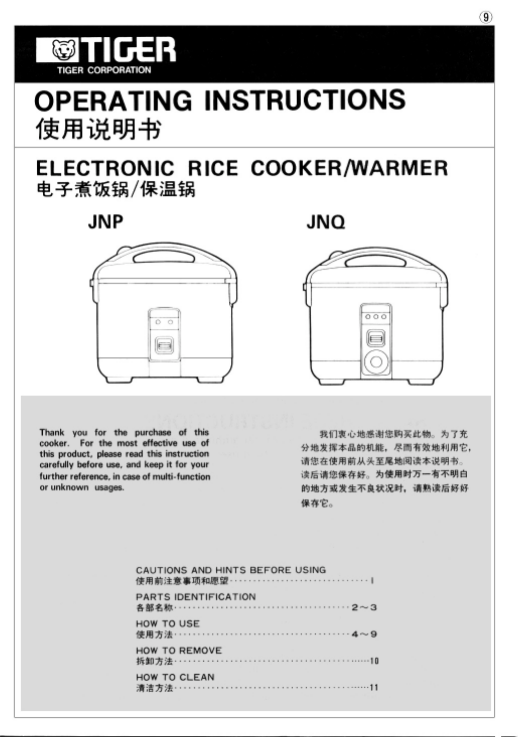 Tiger Products Co Ltd Corporation Rice Cooker Jnp Users Manual