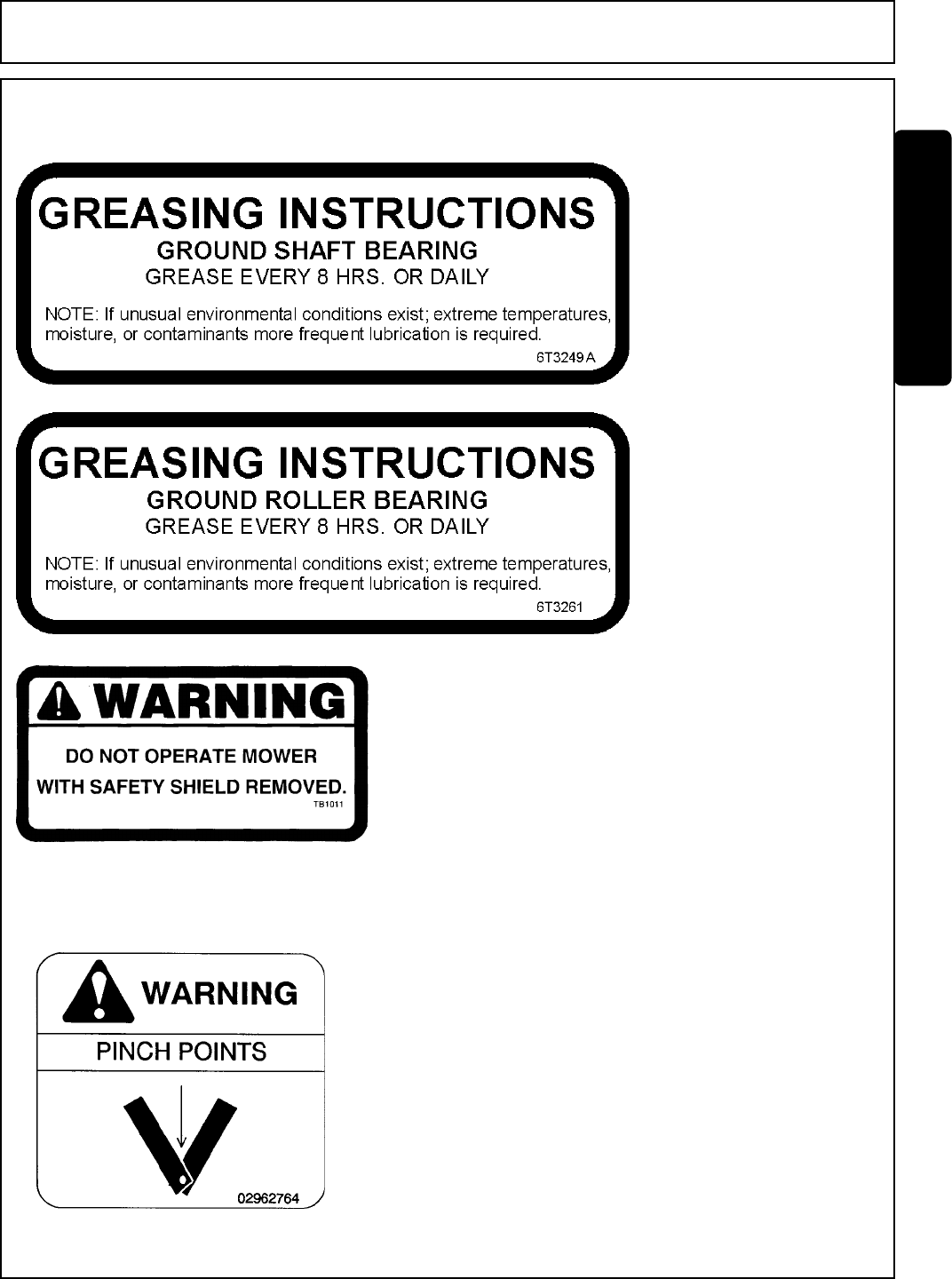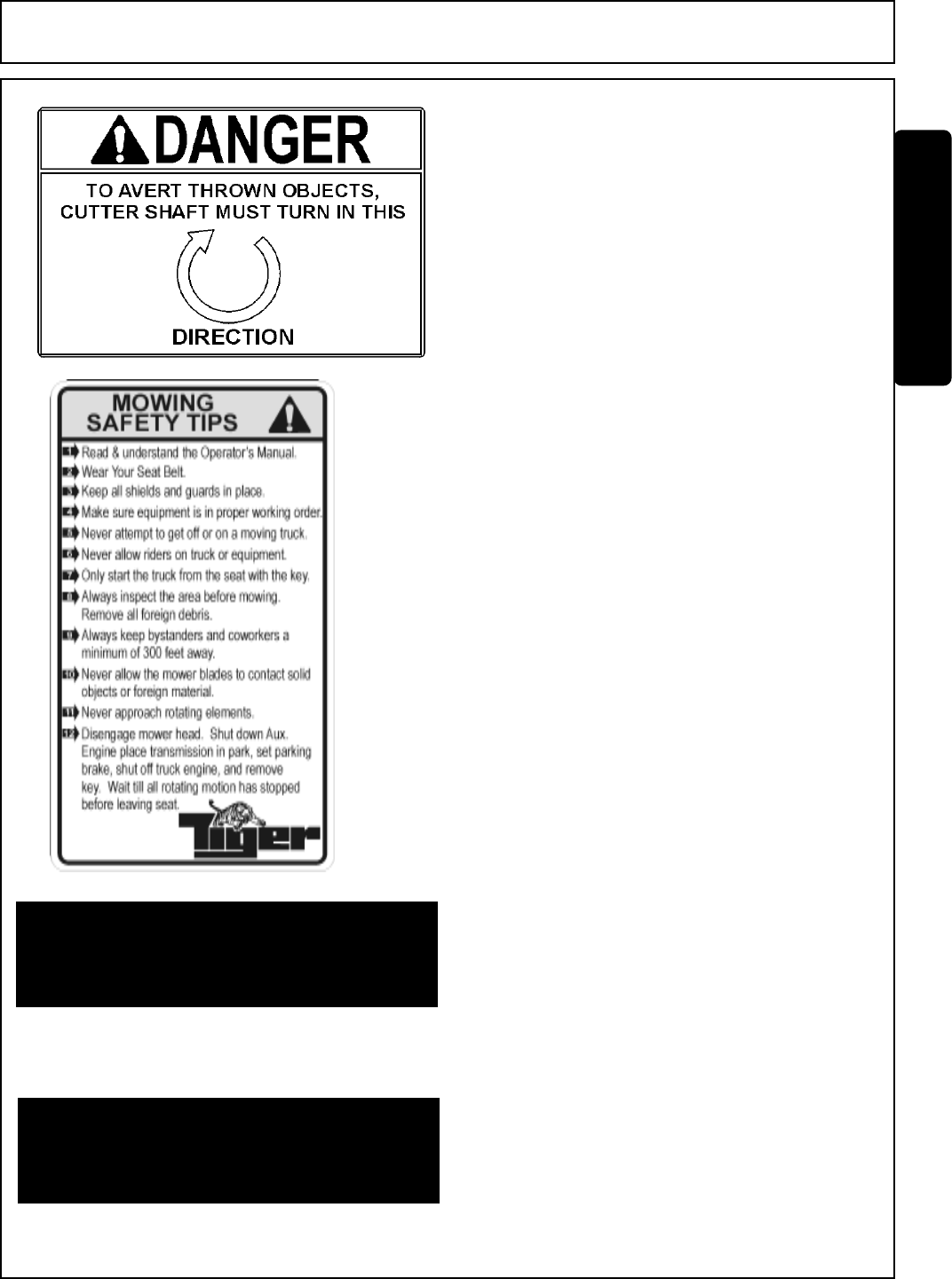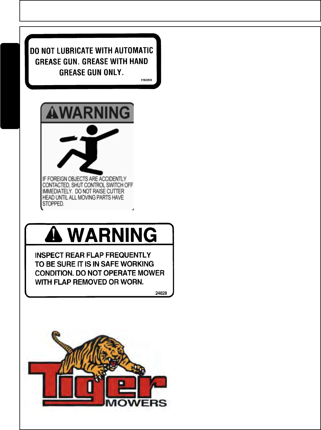 This manual contains information about many features of the Tiger mowing