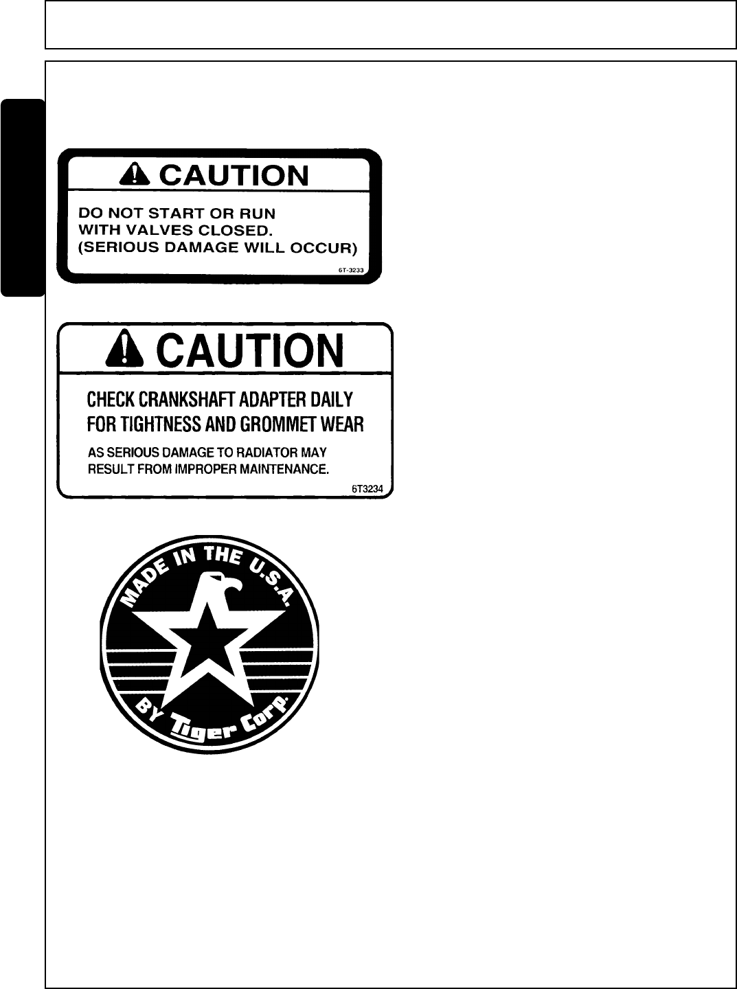 All Tiger obligation under this warranty shall be terminated if the equipment is