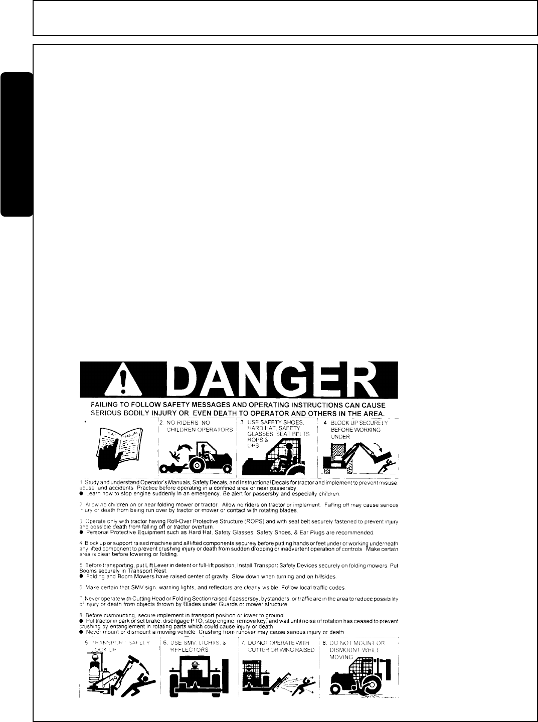BEFORE YOU START!! Read the safety messages on the implement and shown in this manual.