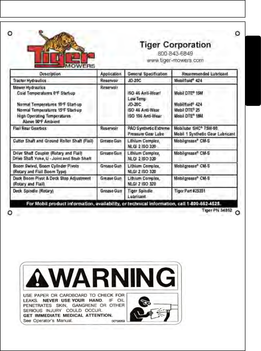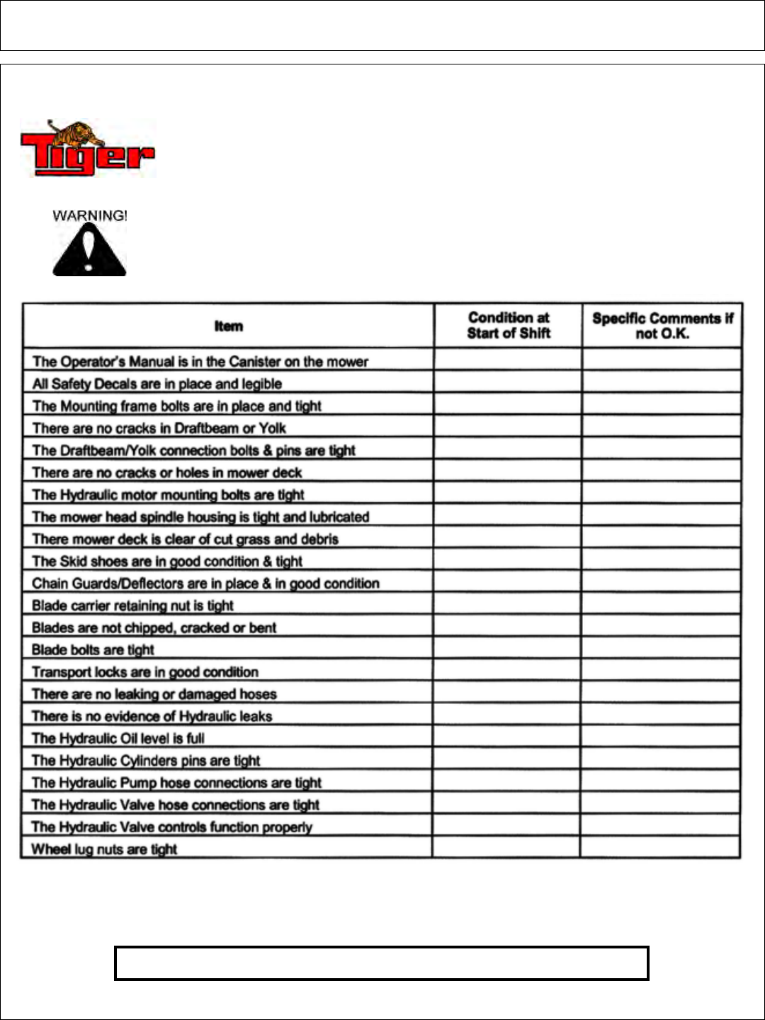 If at any time, you have a service problem with your Tiger mower, Contact