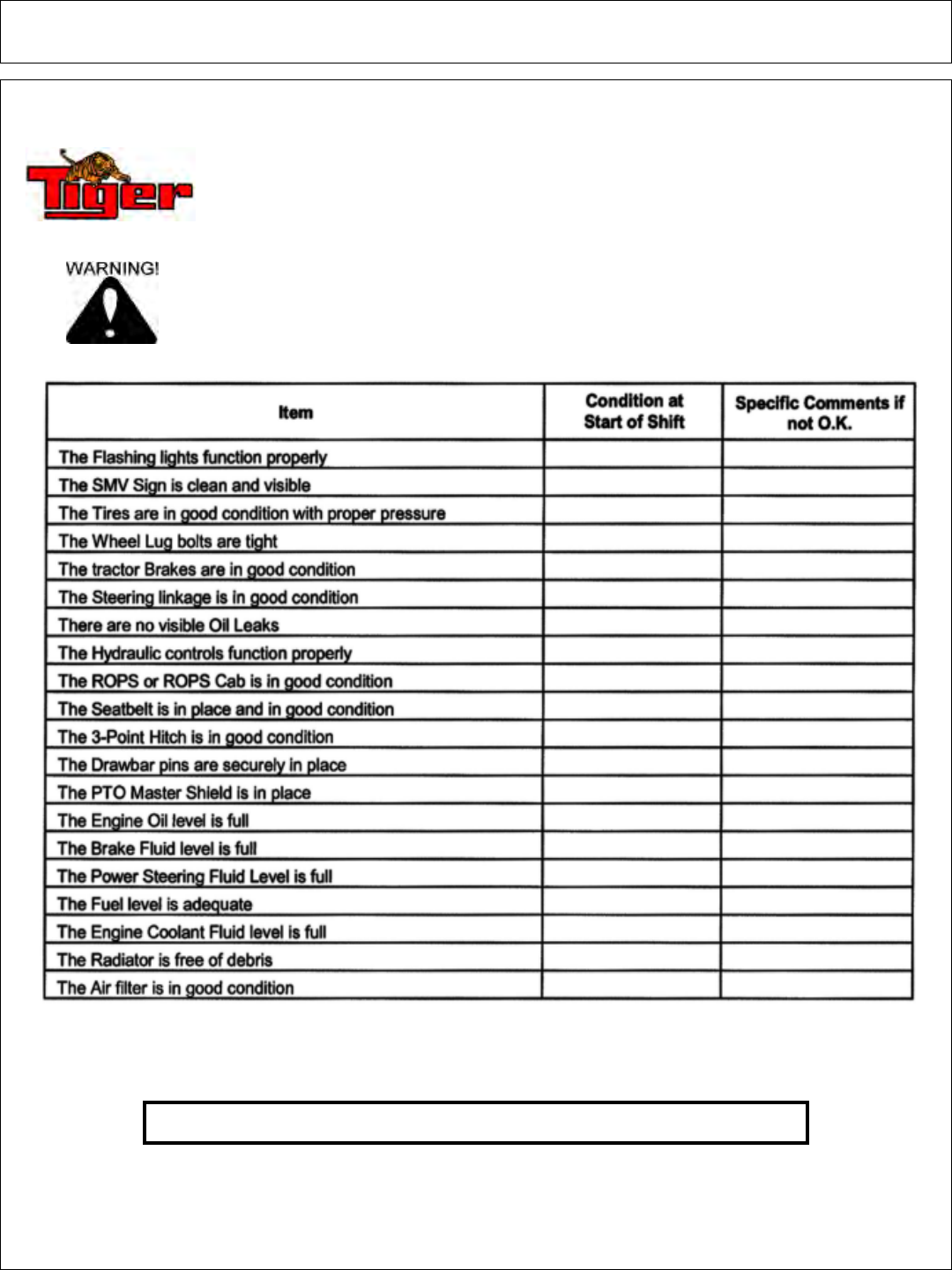 • If unable to correct the problem yourself, contact your local Tiger Dealer after