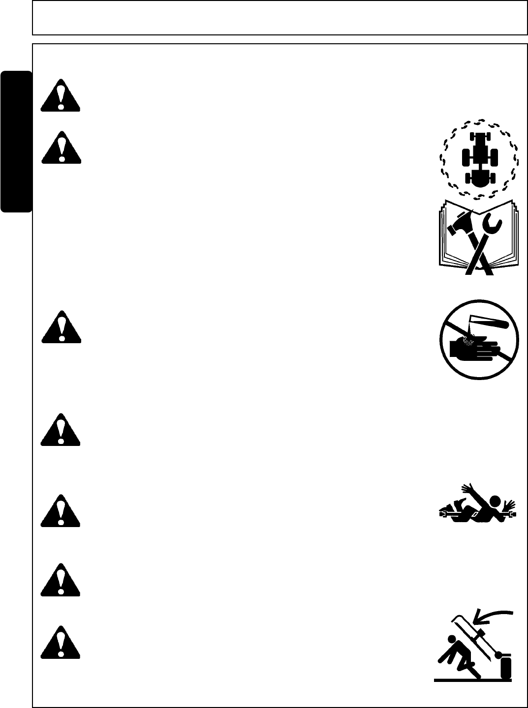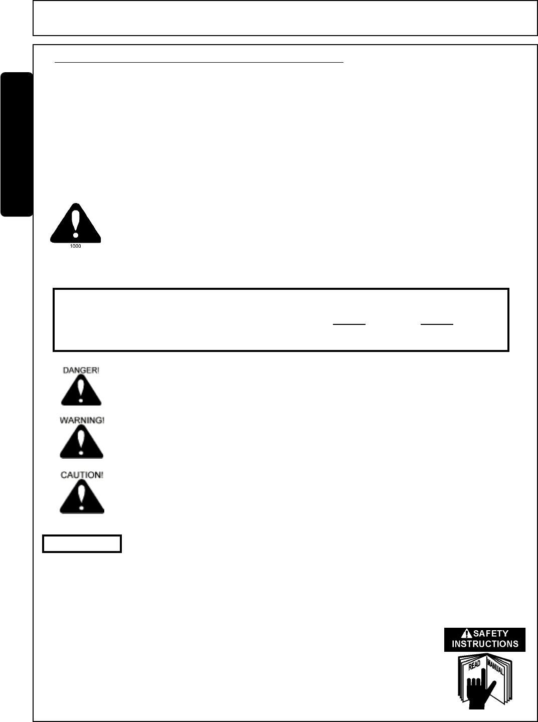 READ AND UNDERSTAND THIS MANUAL! Non–English speaking operators will need to GET