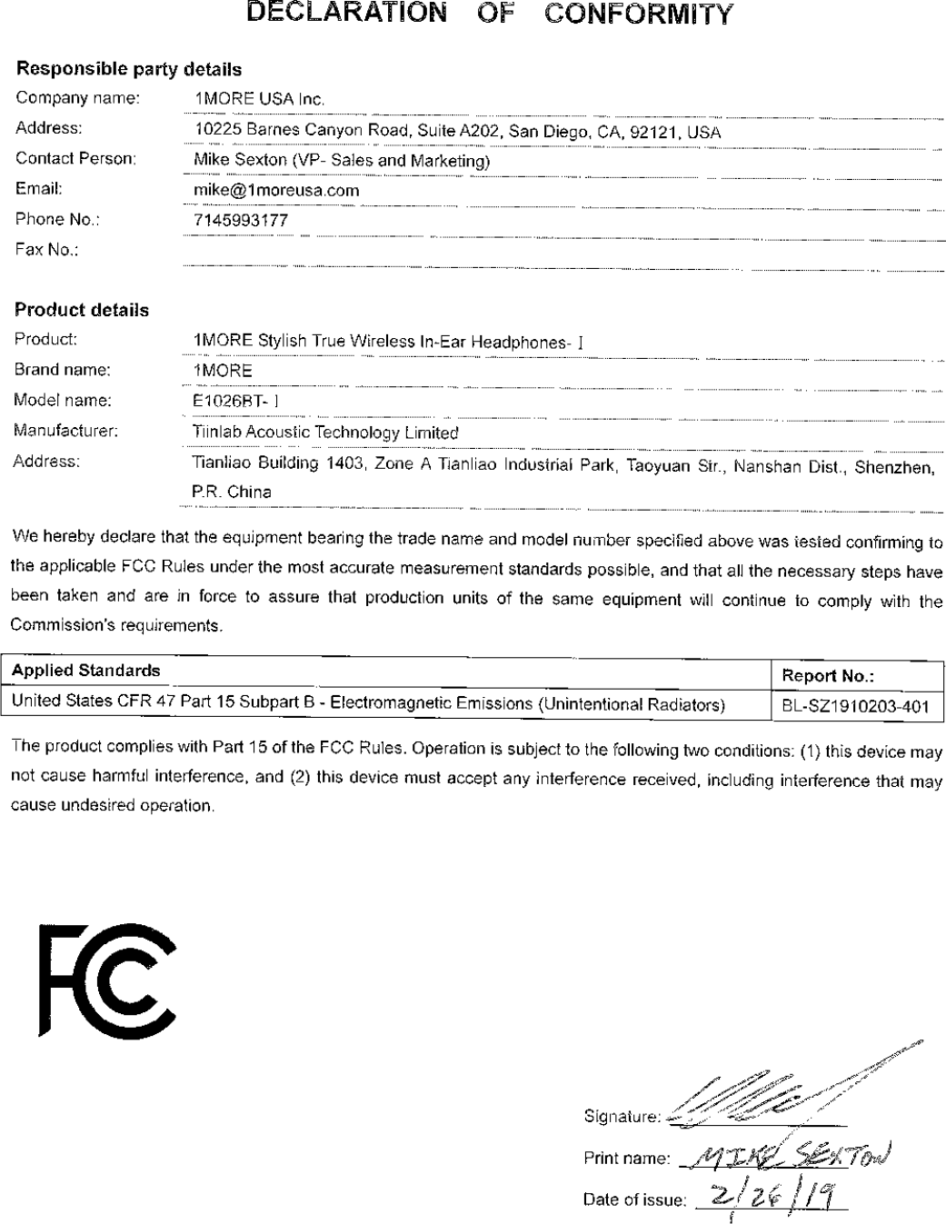 Tiinlab E1026BT-IL 1MORE Stylish True Wireless In-Ear Headphones-I User Manual E1026BT