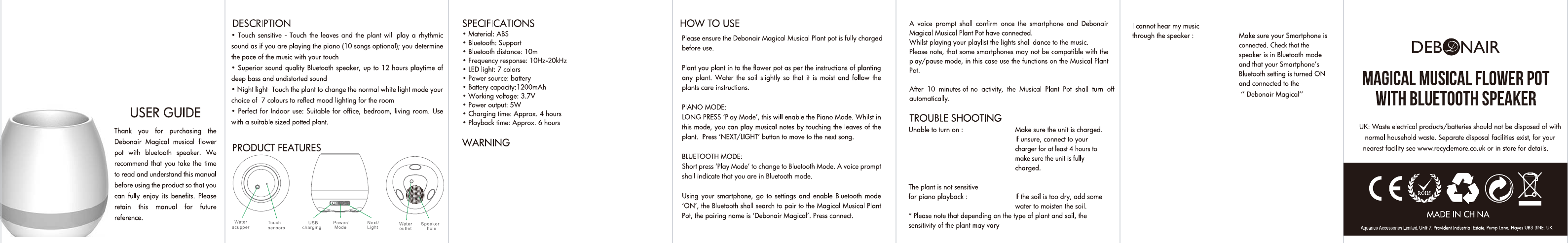 The Debonair Music Flower Pot has a built in rechargable lithium