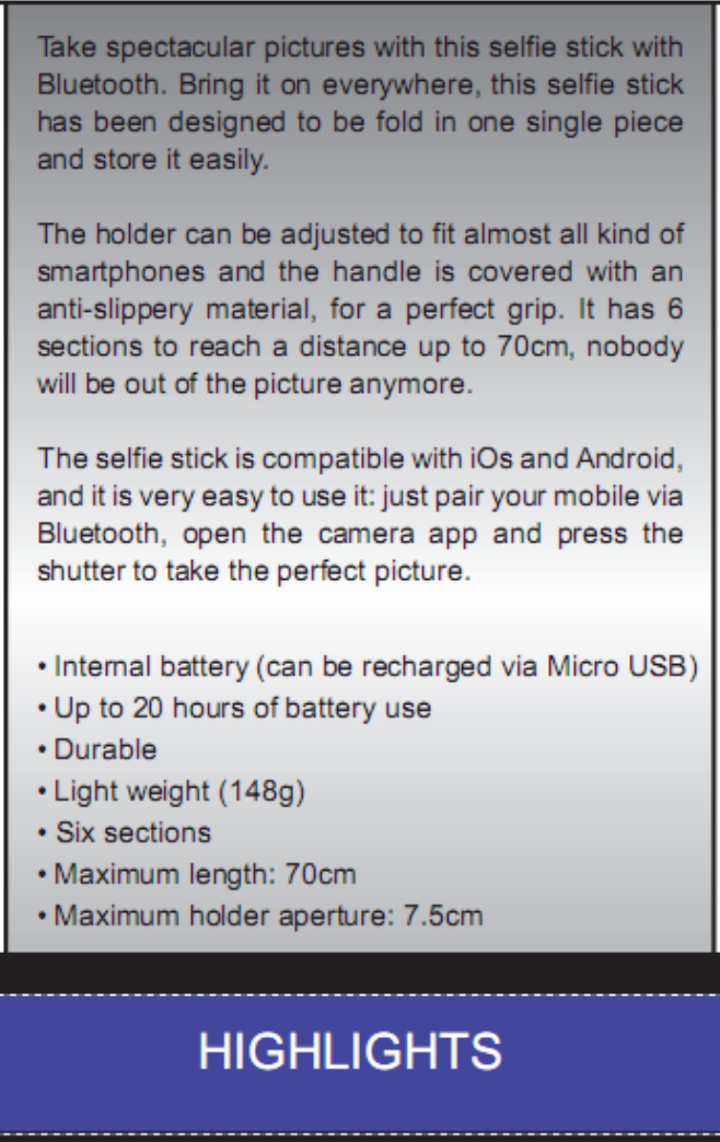 Tilv Technology TYV-1639B Selfie stick User Manual Doc1 1111x