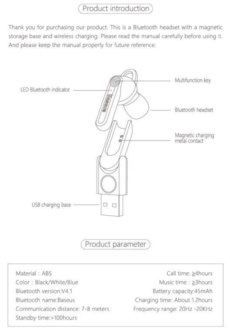 Times Innovation Technology NGCX Baseus Magnetic Blue-tooth Earphone User Manual