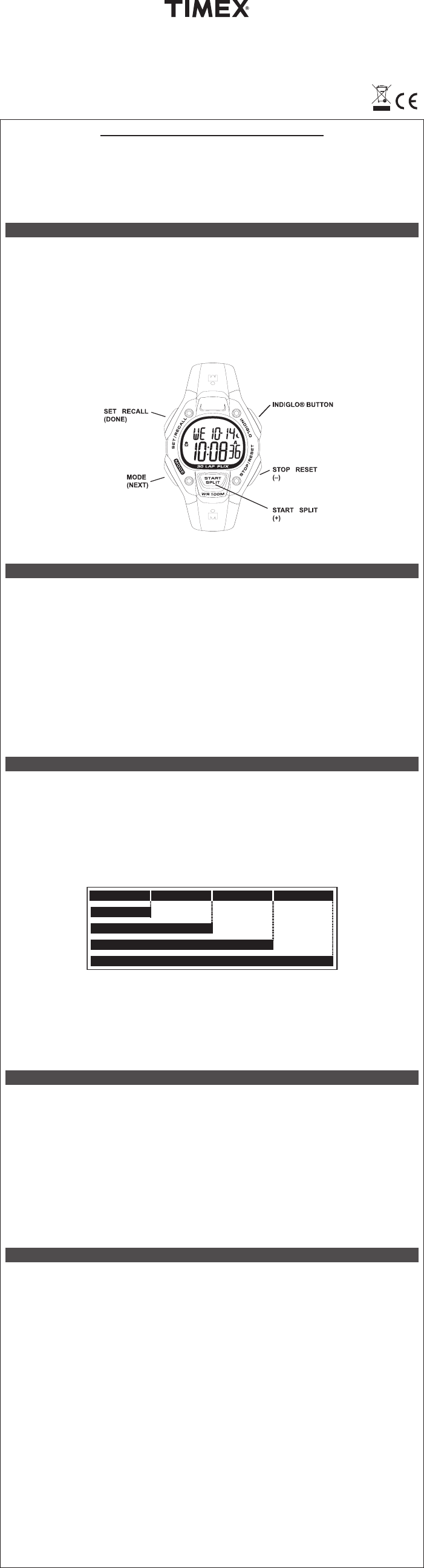 ©2009 Timex Group USA, Inc. TIMEX and NIGHT-MODE are registered trademarks of Timex Group USA, Inc. INDIGLO is a reg-