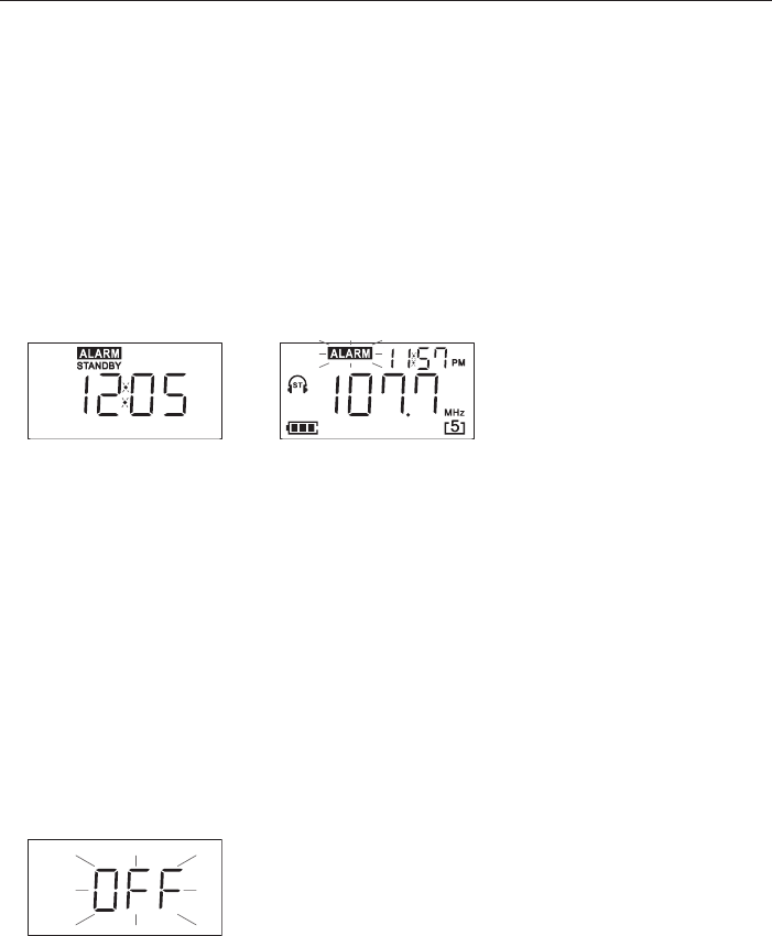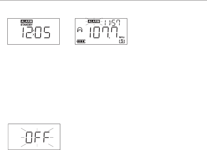 Sie einen Bestätigungston erhalten und das Wort Alarm im Display erscheint. Das Radio wechselt