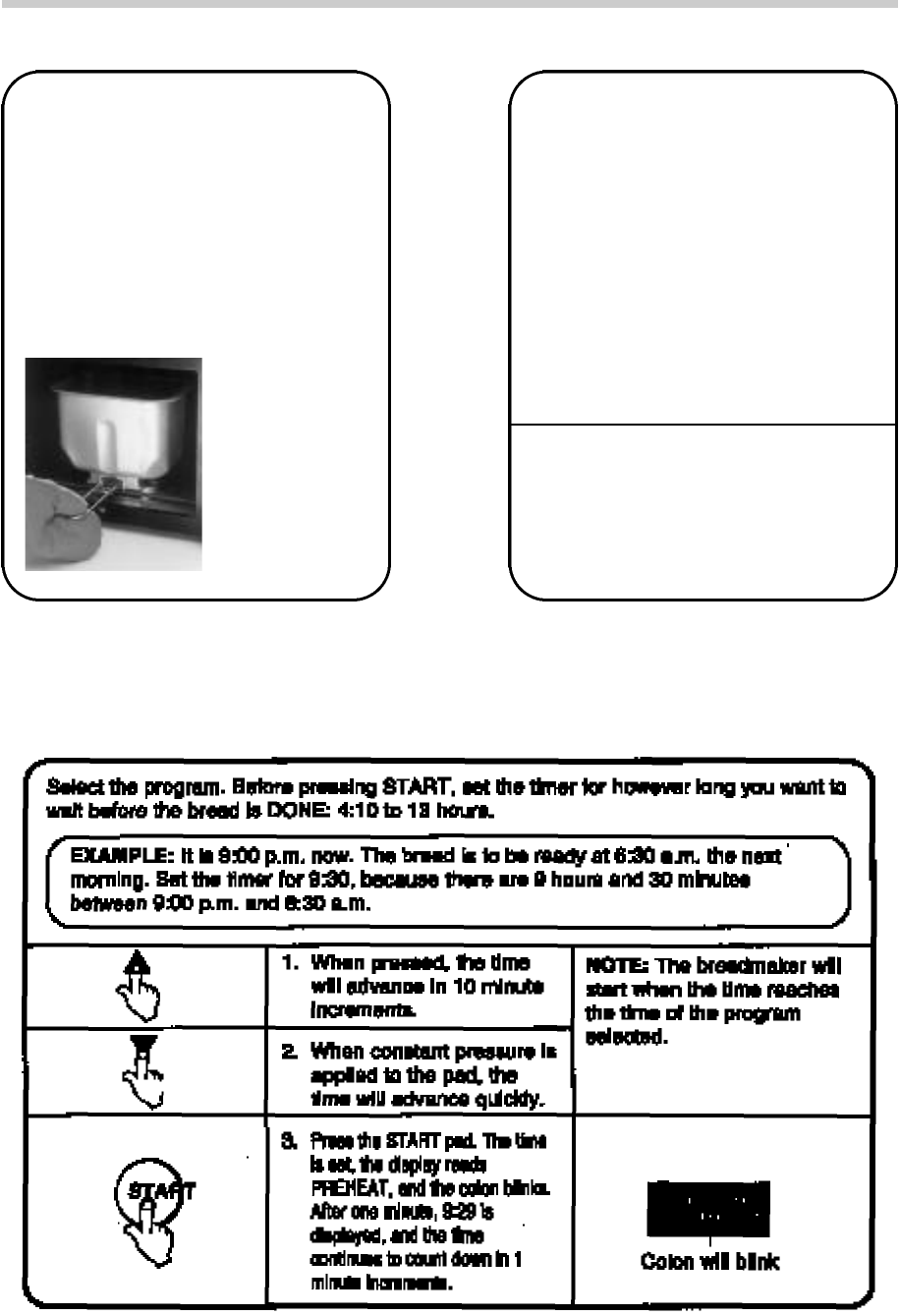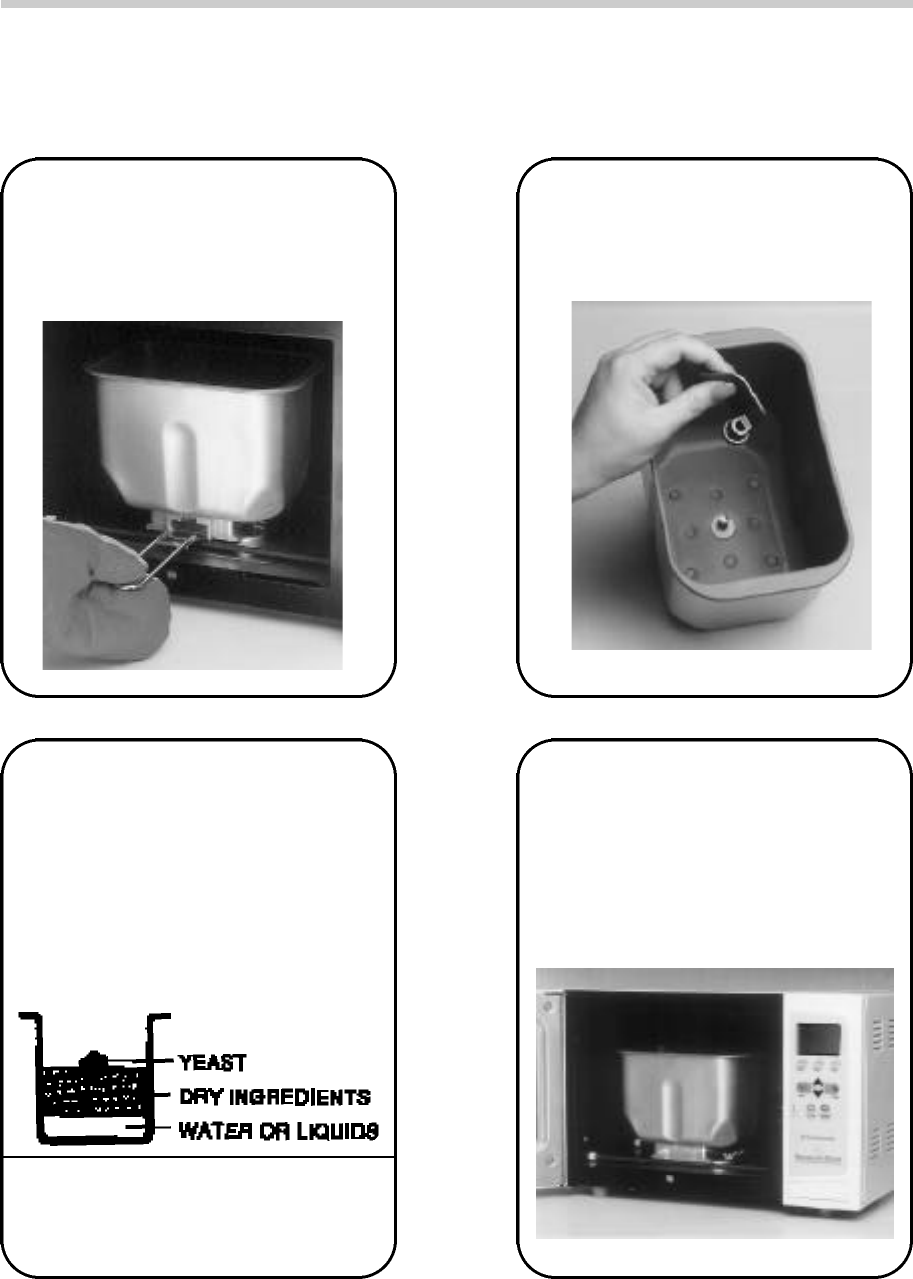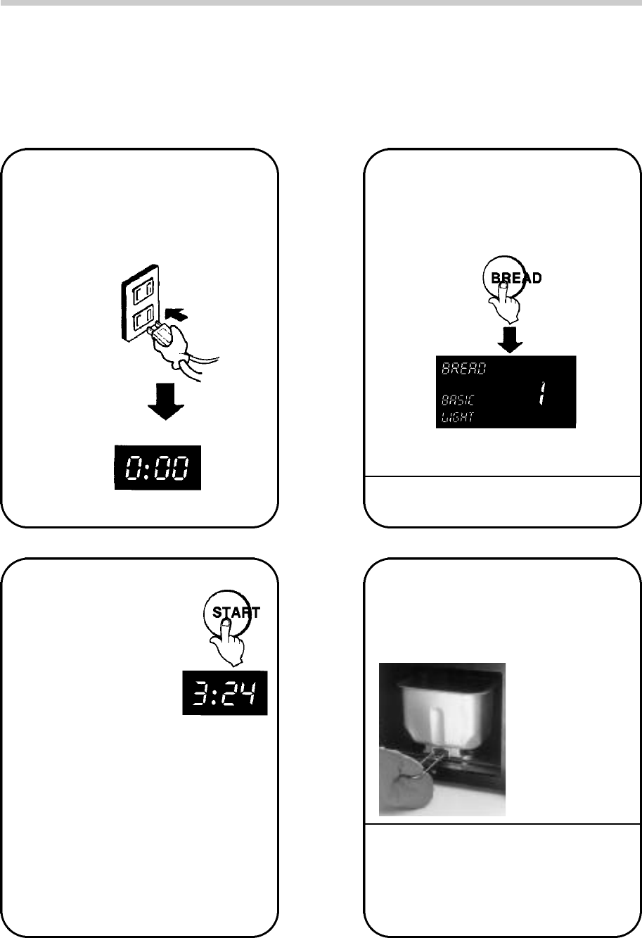 •Do not touch hot surfaces. Always use oven mitts when handling the hot bread pan and handle or