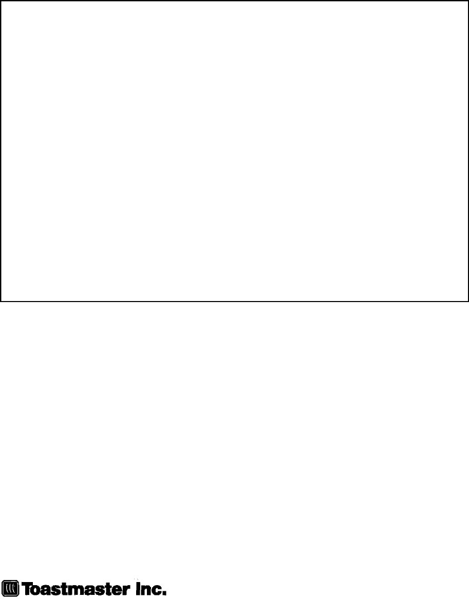 This wa r ranty is the only written or express wa r ranty given by Toastmaster Inc. This wa r ra n t y
