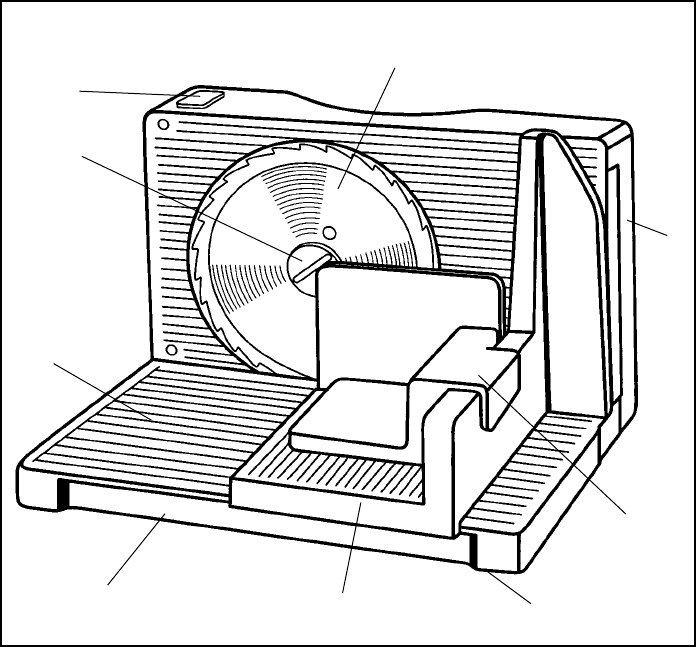 8. FOOD PUSHER. Interlocks with food tray for safe cutting.