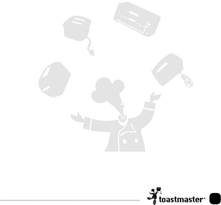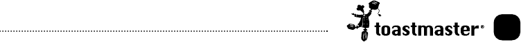 Warranty: This Toastmaster®product is warranted to be free from defects in materials or workmanship for a period of