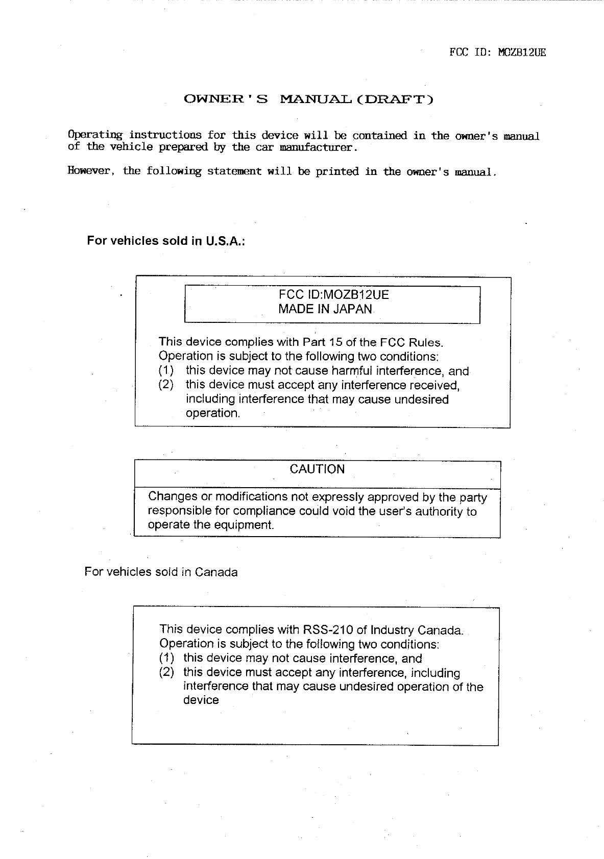 Tokai Rika Co B12UE RF Receiver User Manual Exhibit B Owners Manual