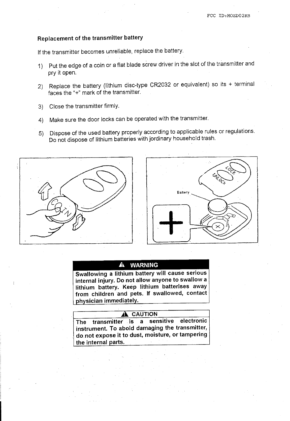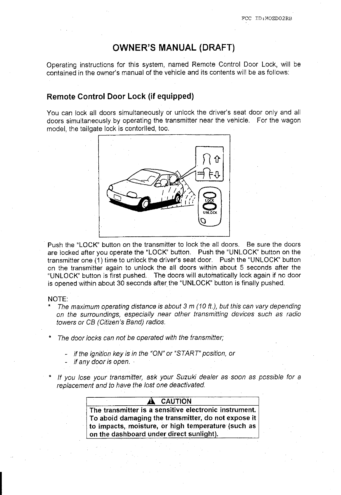 Tokai Rika Co D02RB Keyless Entry System for Cars User Manual