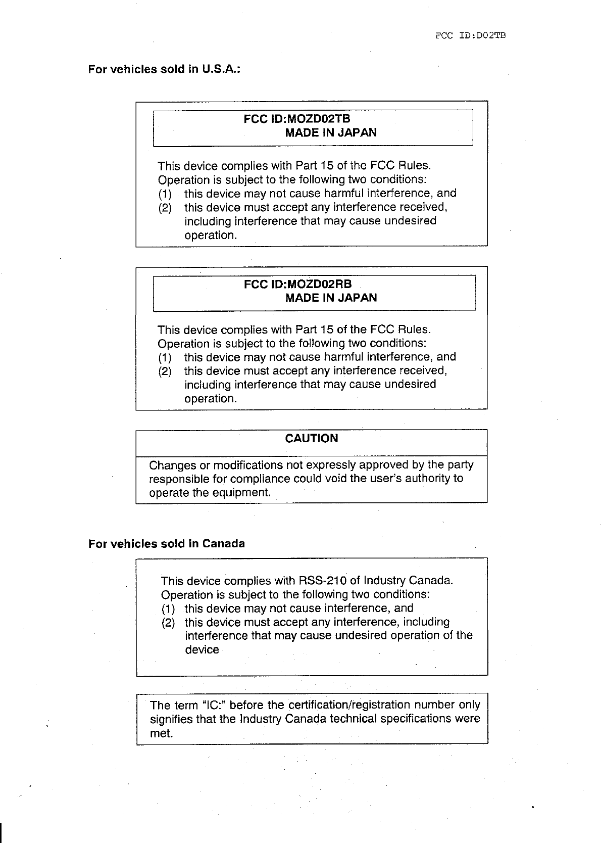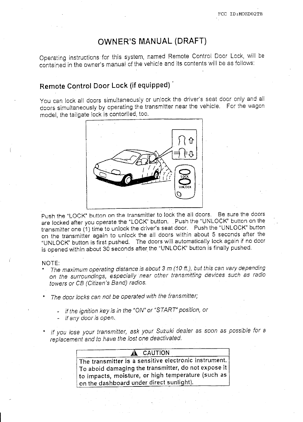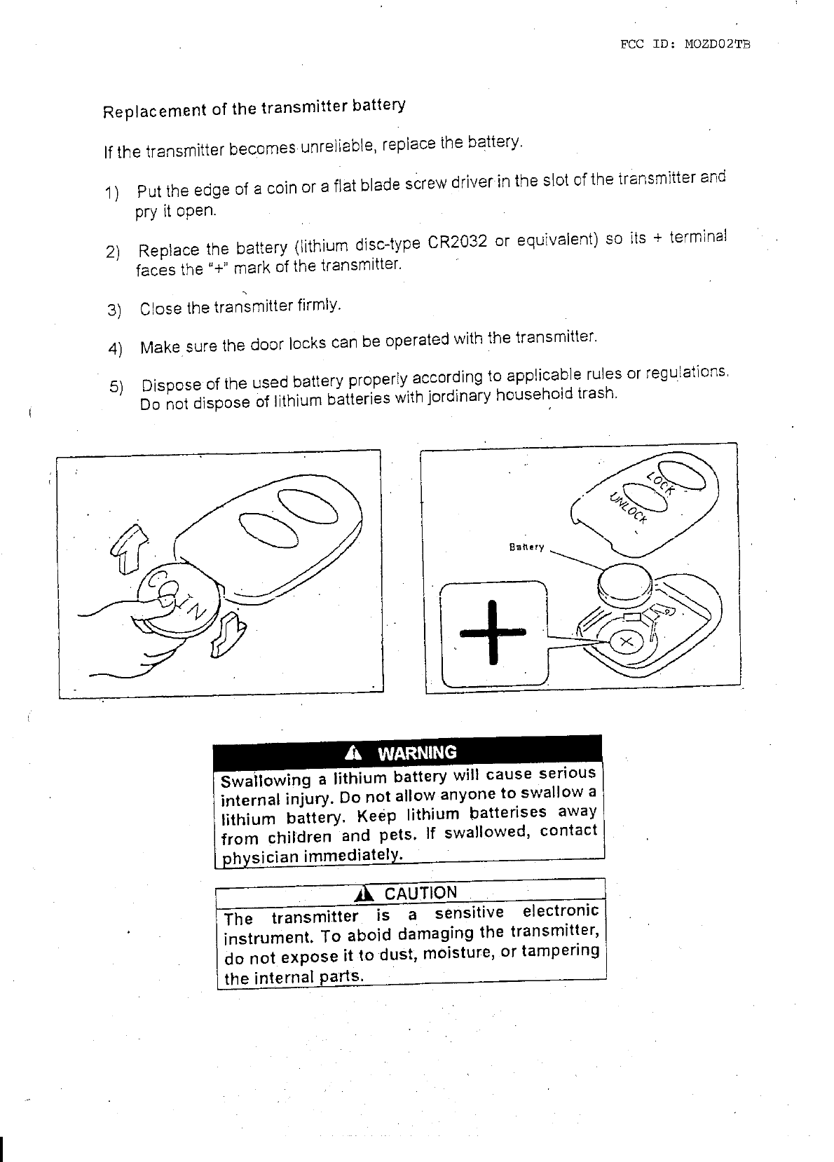 Tokai Rika Co D02TB Keyless entry system, transmitter User Manual Owners Manual