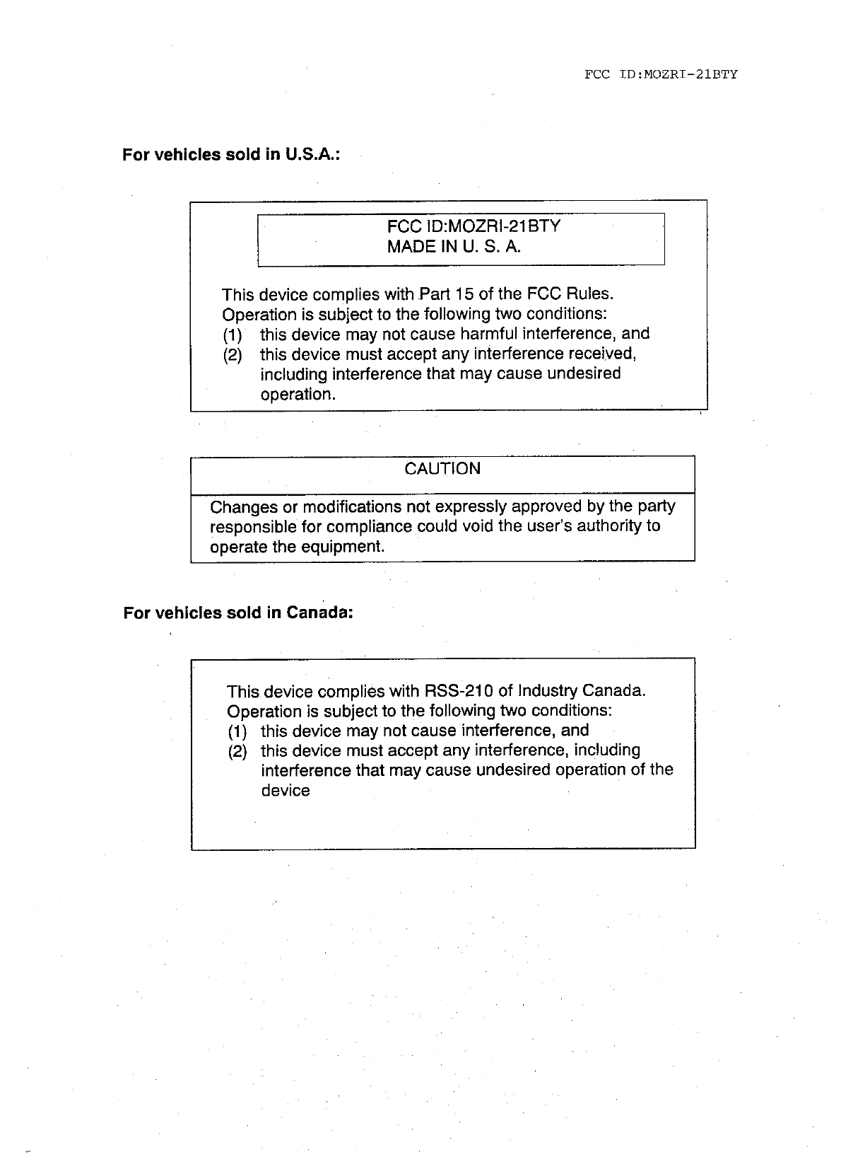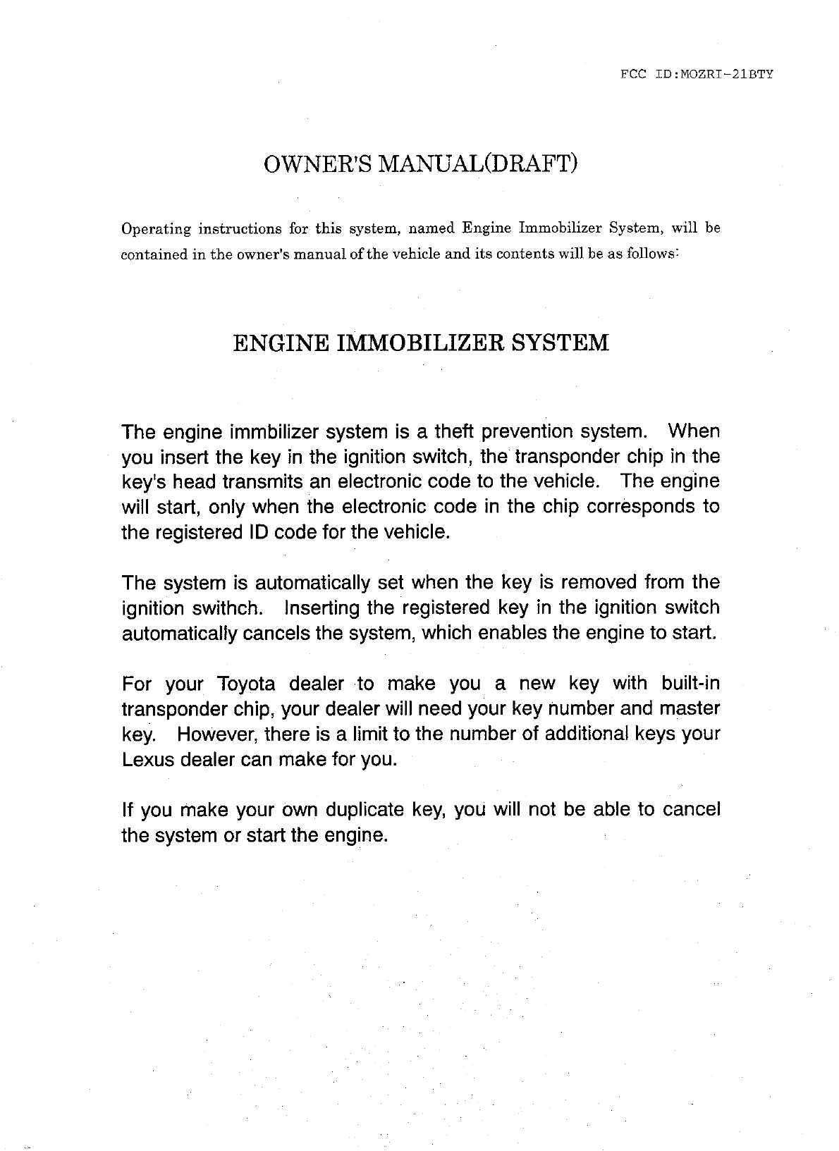 Tokai Rika Co RI-21BTY Immobilizer System For Cars User Manual