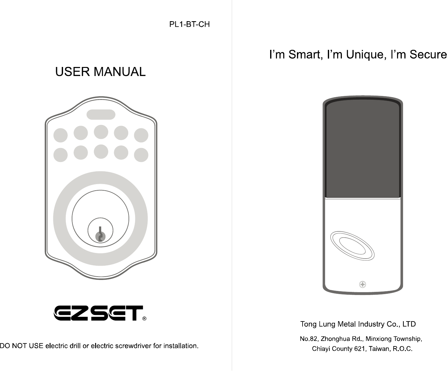 Tong Lung Metal Industry PL1-BT-CH Electronic BLE Deadbolt User Manual