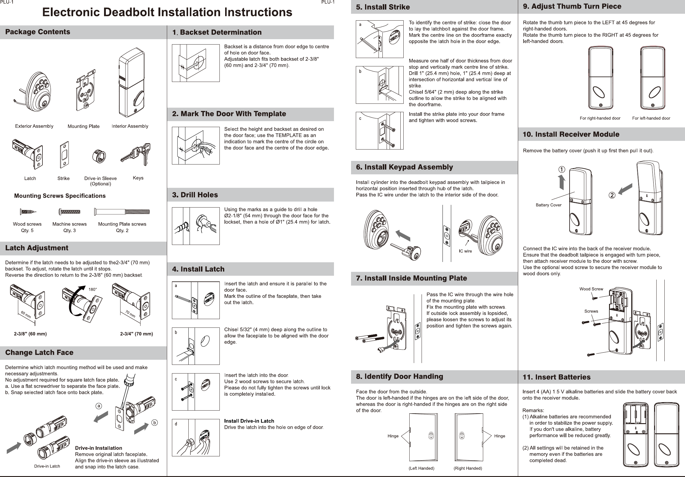 Tong Lung Metal Industry PLU-BT KEYPAD ELECTRONIC BLE DEADBOLT LOCK User Manual Manual