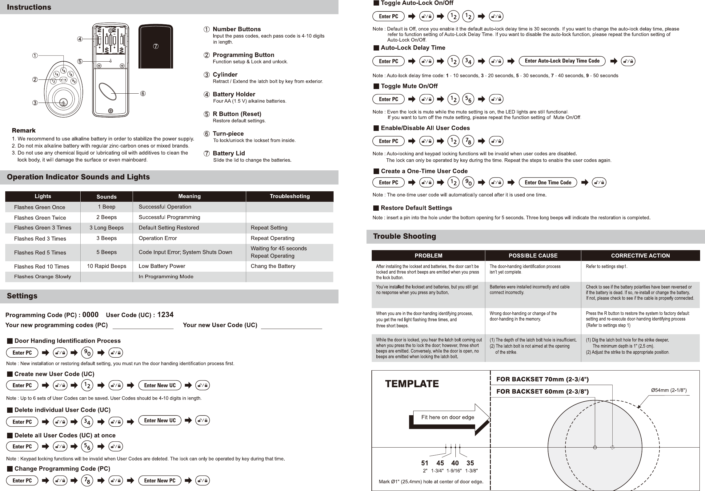 Tong Lung Metal Industry Co.,Ltd. KEYPAD ELECTRONIC BLE DEADBOLT LOCK Manual