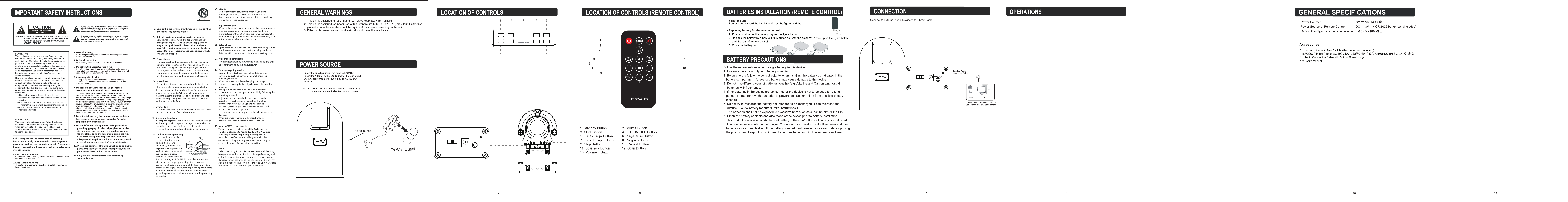 remote control. For a better signal, adjust the FM Antenna wire.To