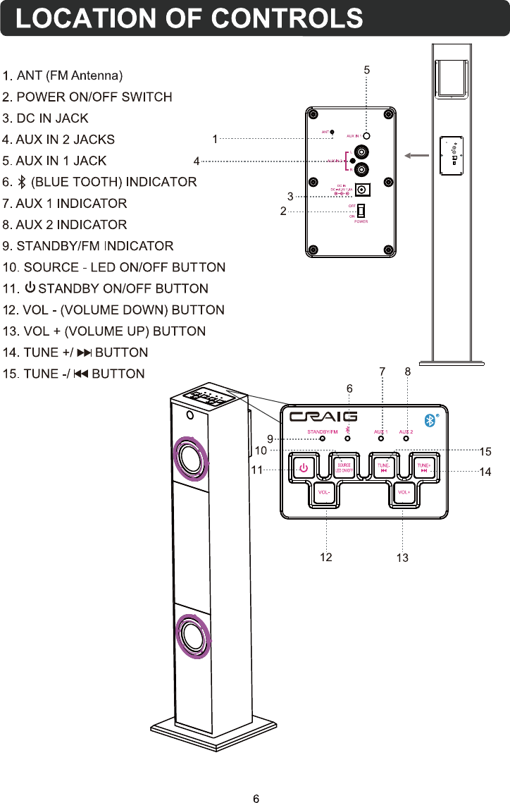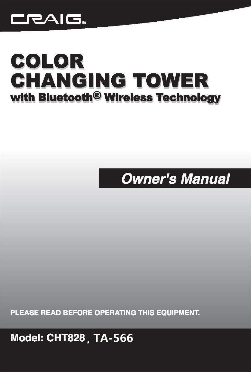 Tonika Electronics Technology TA-828-01 COLOR CHANGING TOWER WITH BLUETOOTH WIRELESS TECHNOLOGY User Manual new born
