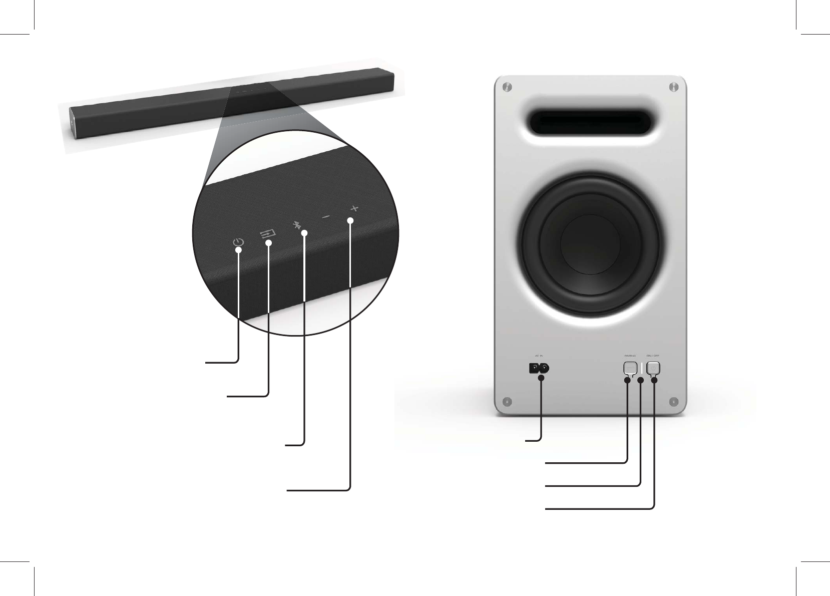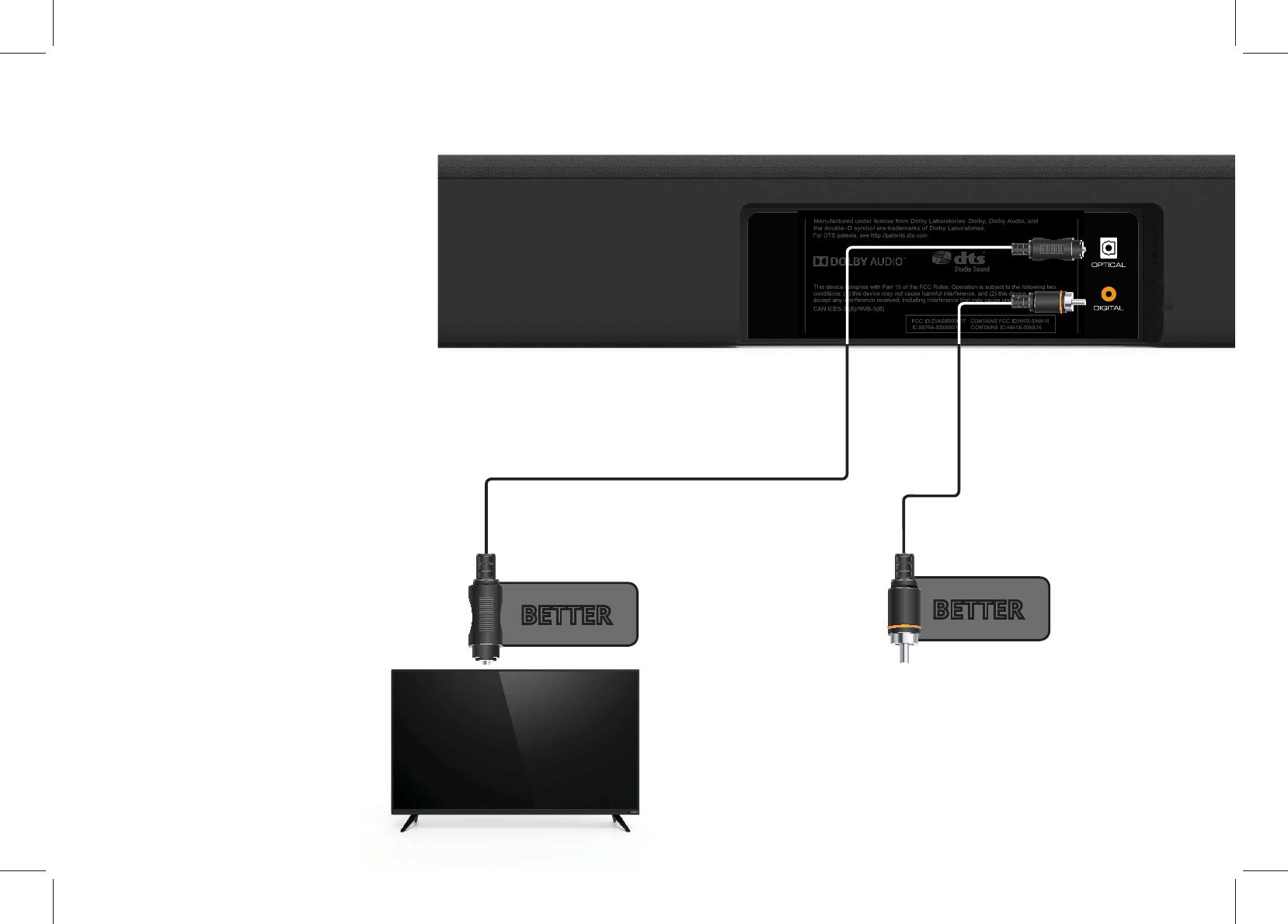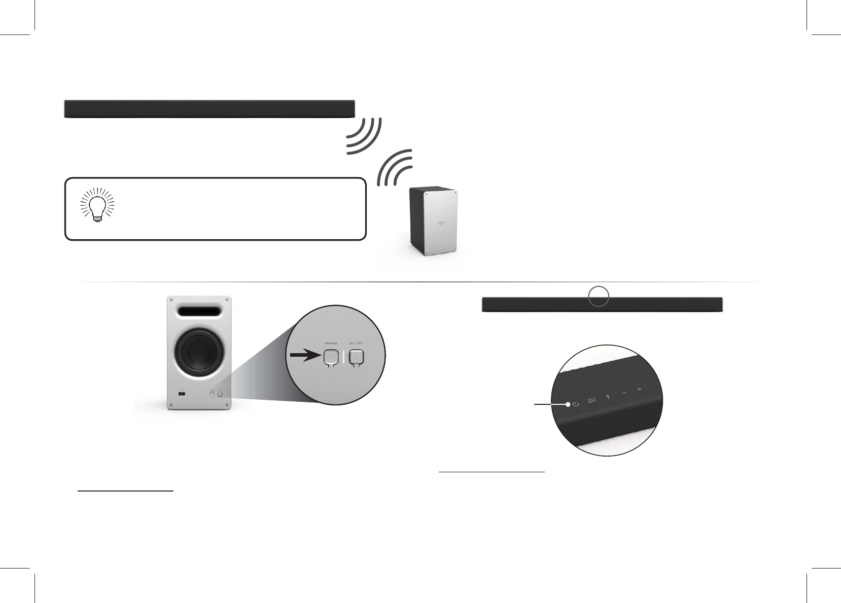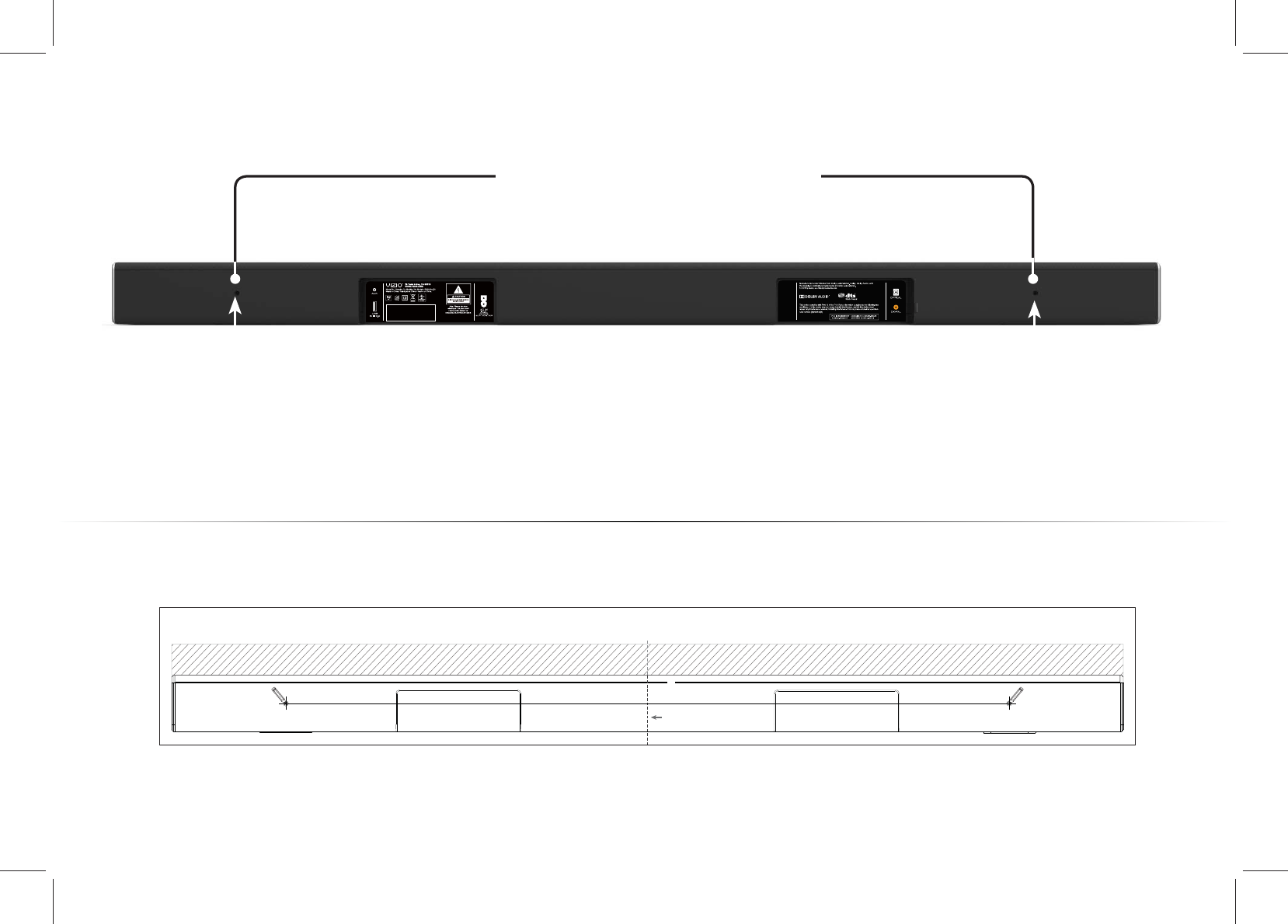 LEAVE THIS SPACE BETWEEN THE SOUND BAR AND YOUR TV / LAISSEZ CET ESPACE ENTRE LA BARRE DE SON ET VOTRE TÉLÉVISEUR / DEJE ESTE ESPACIO ENTRE LA BARRA DE SONIDO Y EL TELEVISOR