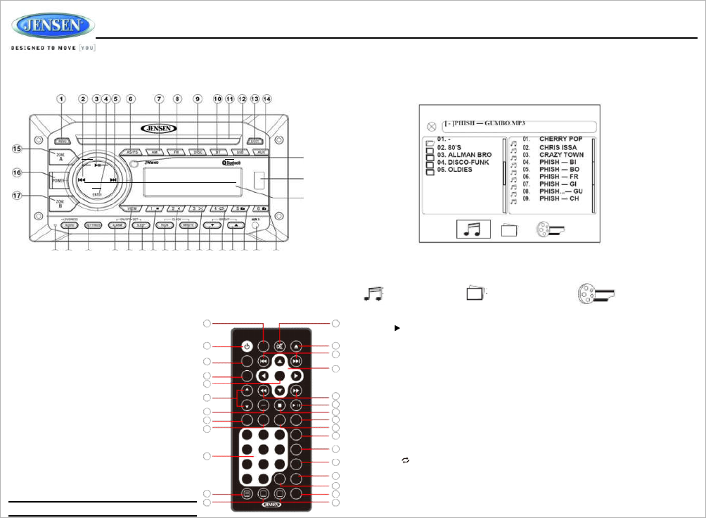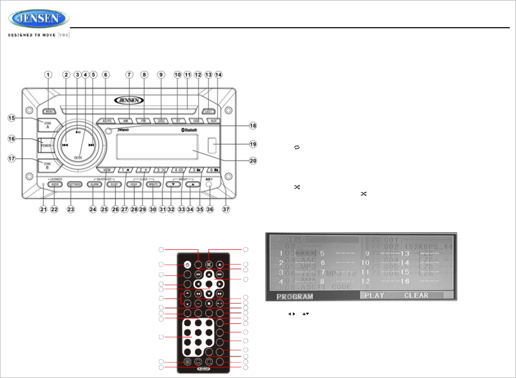 Feature s of Jensen JWM40 mobile audio syste m include: