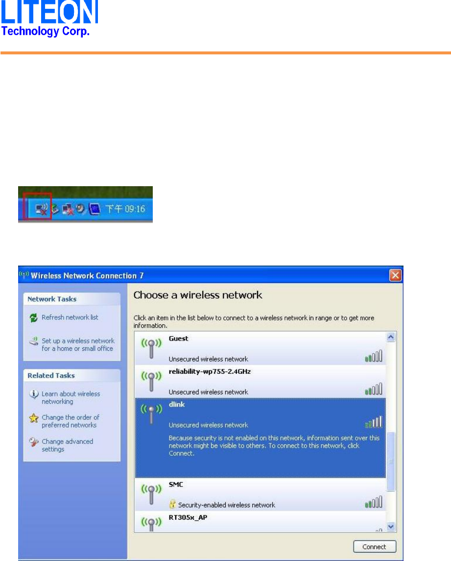 1. Click the Wireless icon to enable Windows Zero Configure.