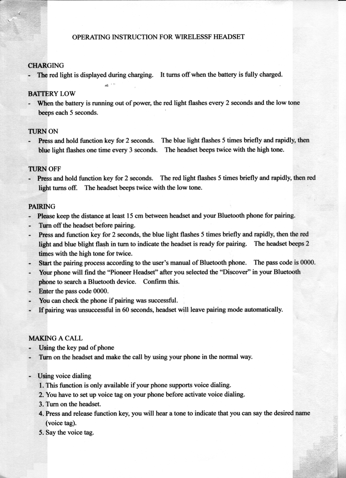 Topcell Technology Co. Ltd. Bluetooth Headset Exhibit E User s Manual