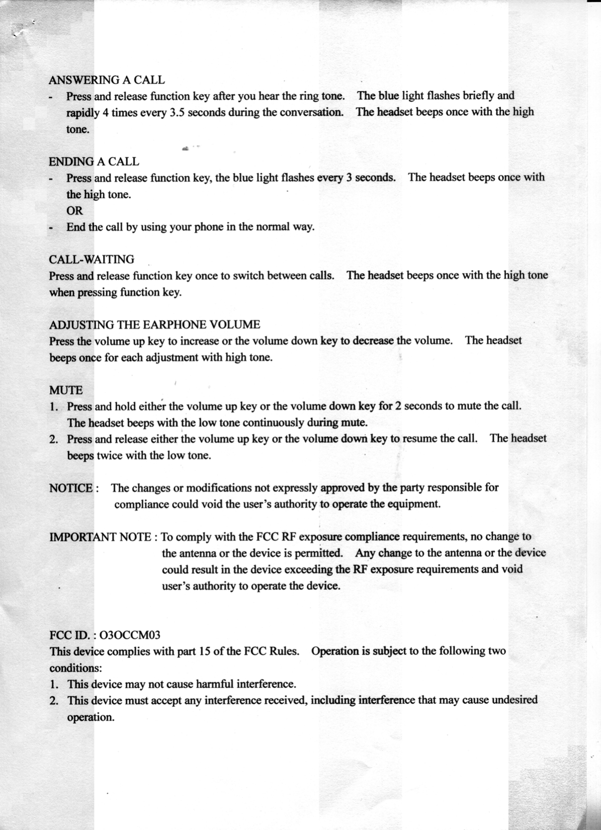 Topcell Technology CCM03 Bluetooth Headset User Manual Exhibit E User s Manual