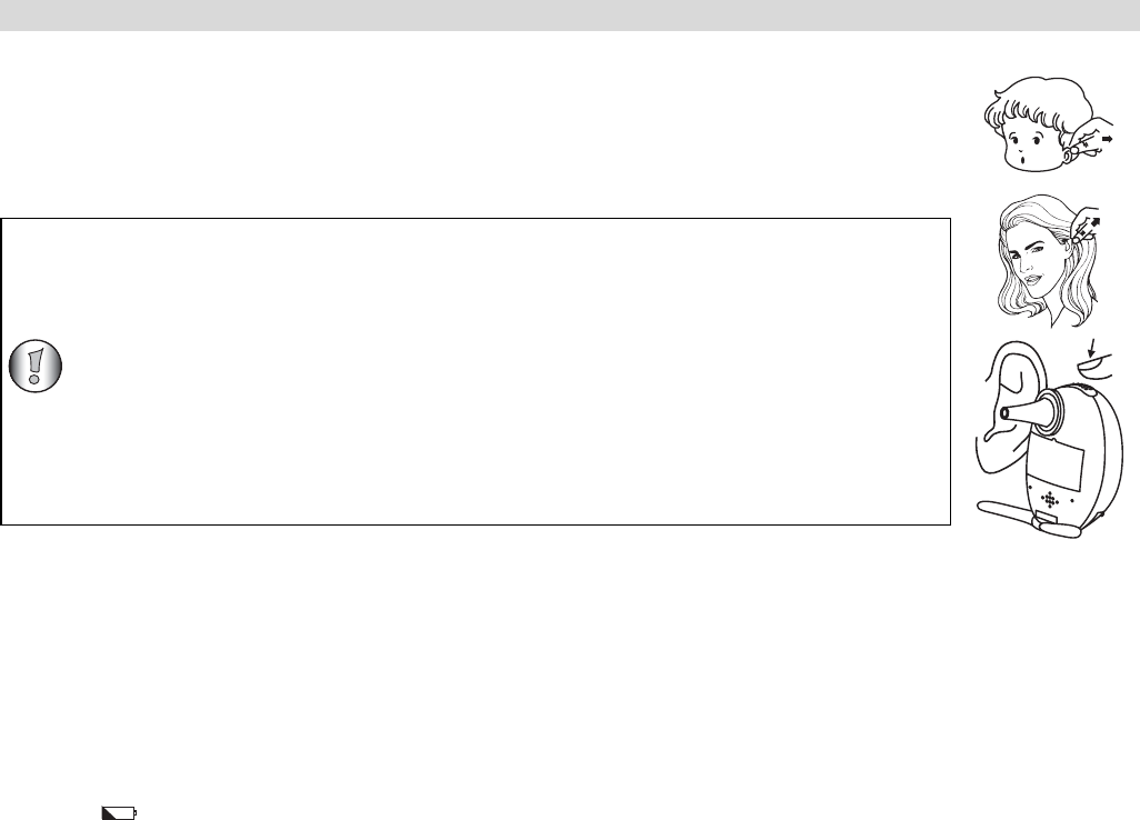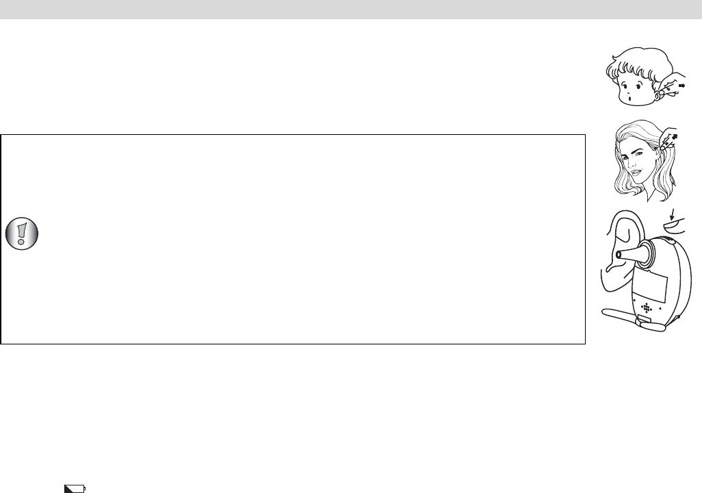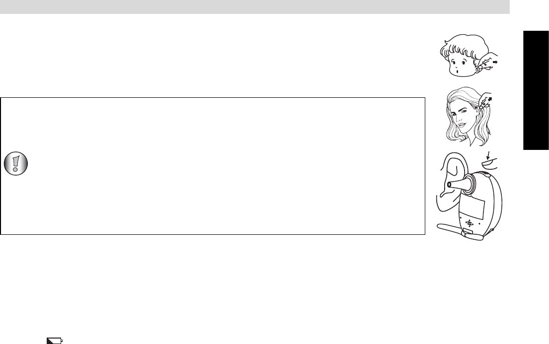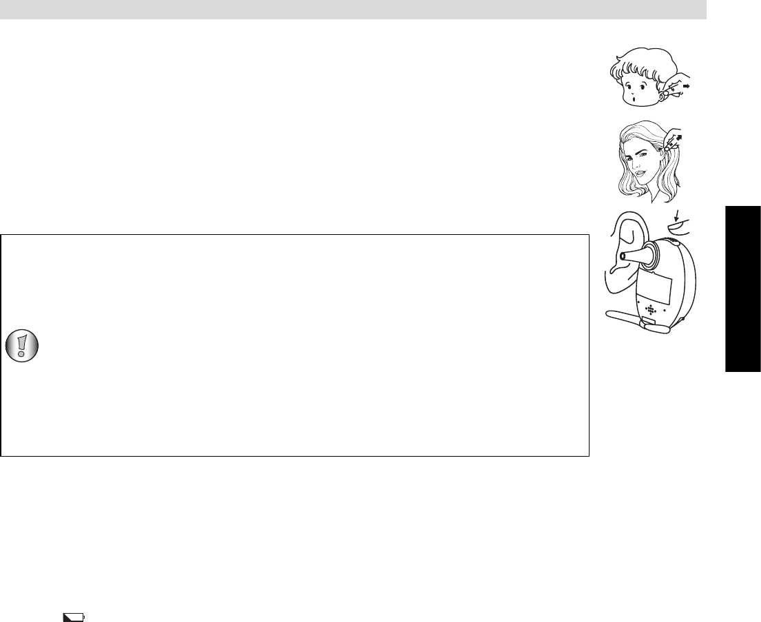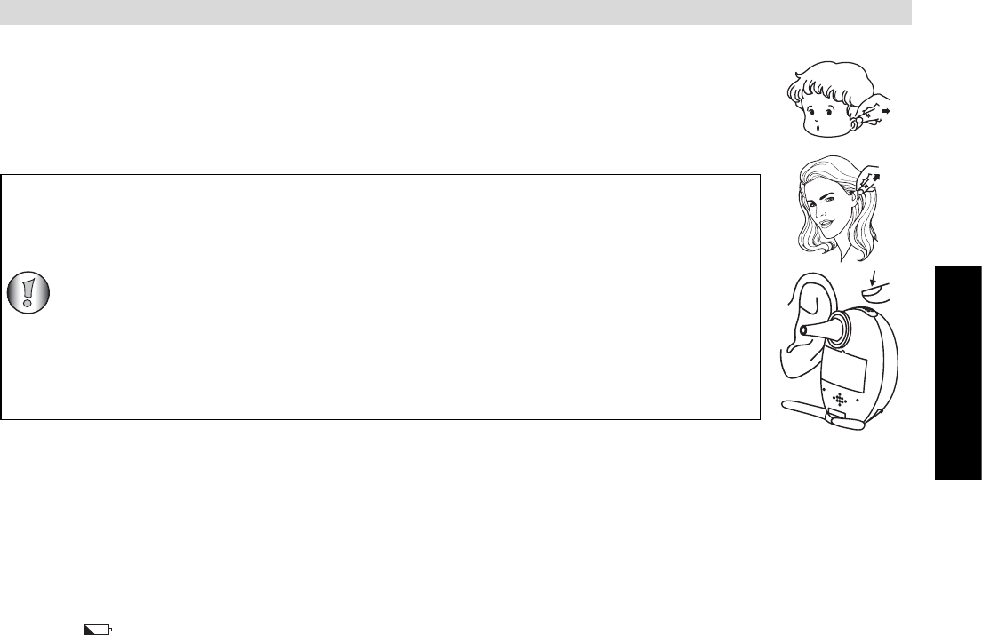 • Do not use the thermometer when the ear canel is wet, or when the person is suffering an ear disease.