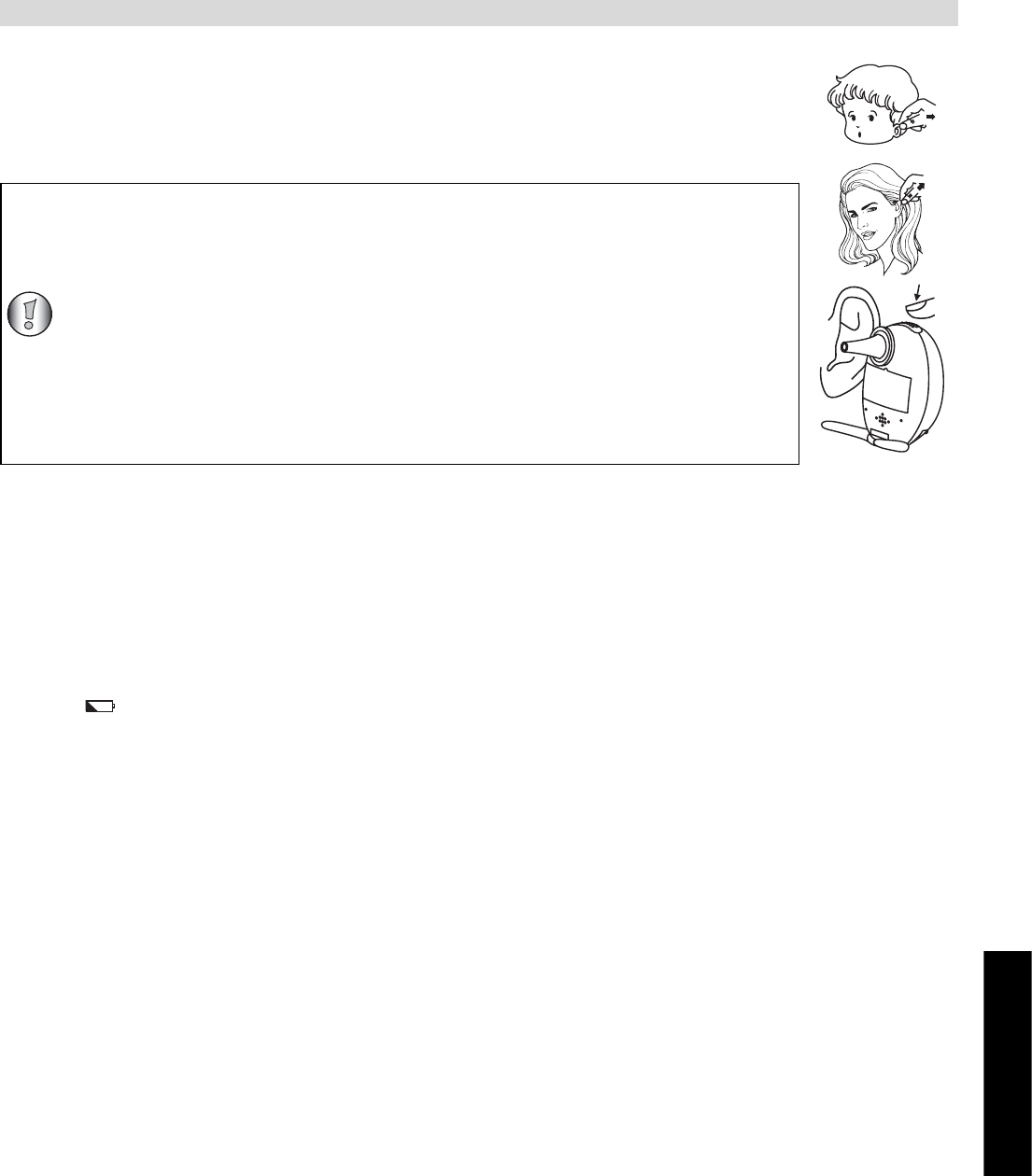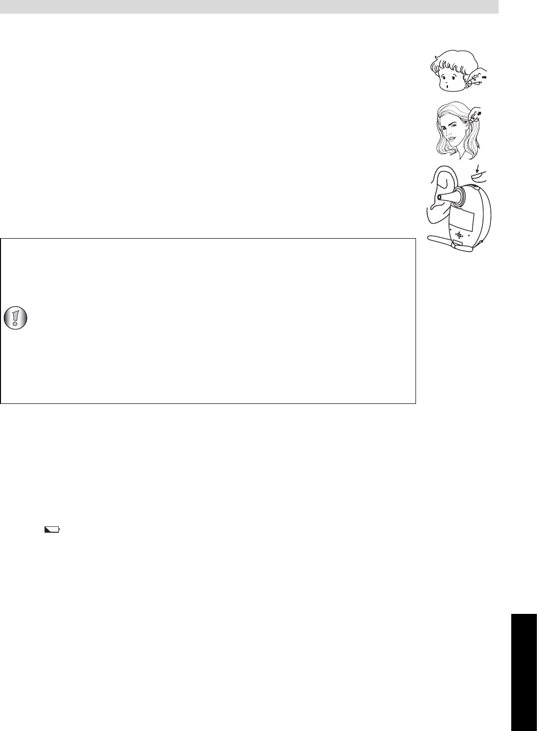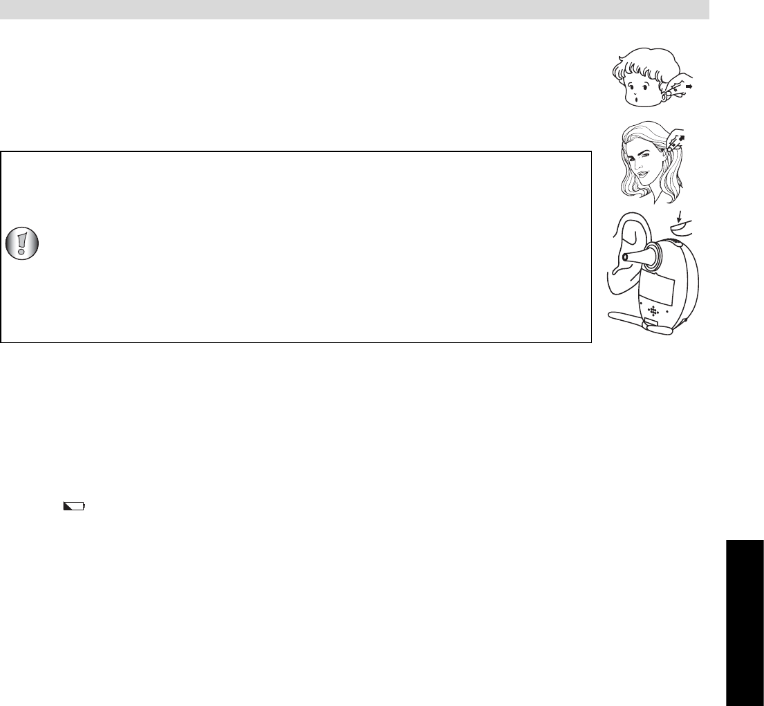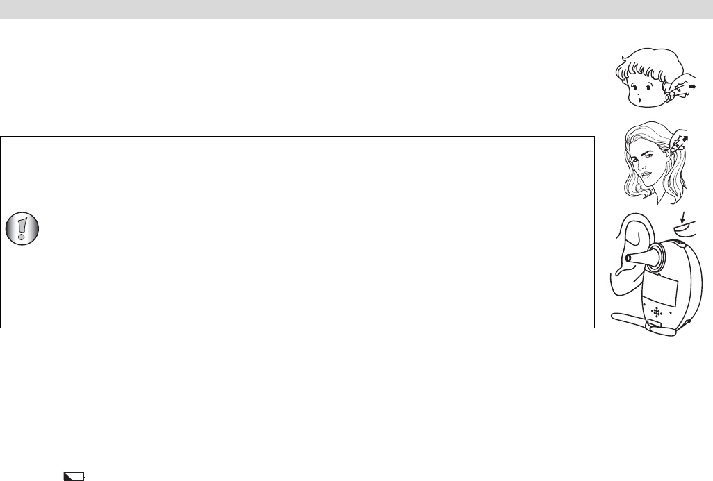 • Do not use the thermometer when the ear canel is wet, or when the person is suffering an ear disease.