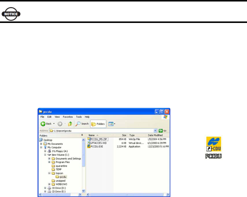 1. Create a PC-CDU folder on the hard drive, and place the compressed PC-CDU zip file