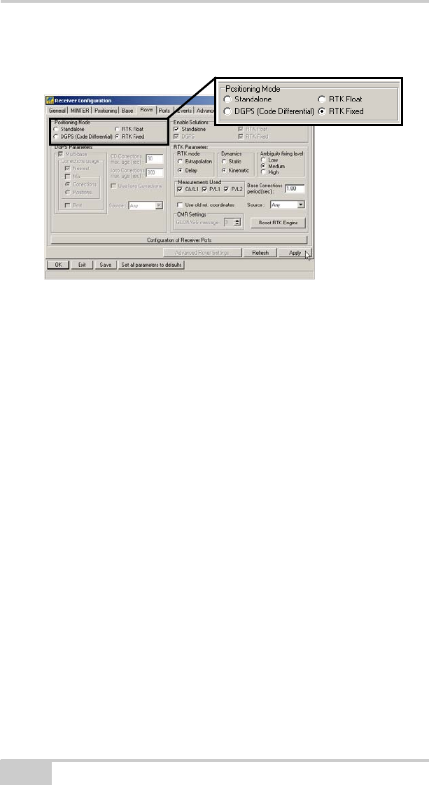 • Specify the Ambiguity fixing level (not applicable to RTK
