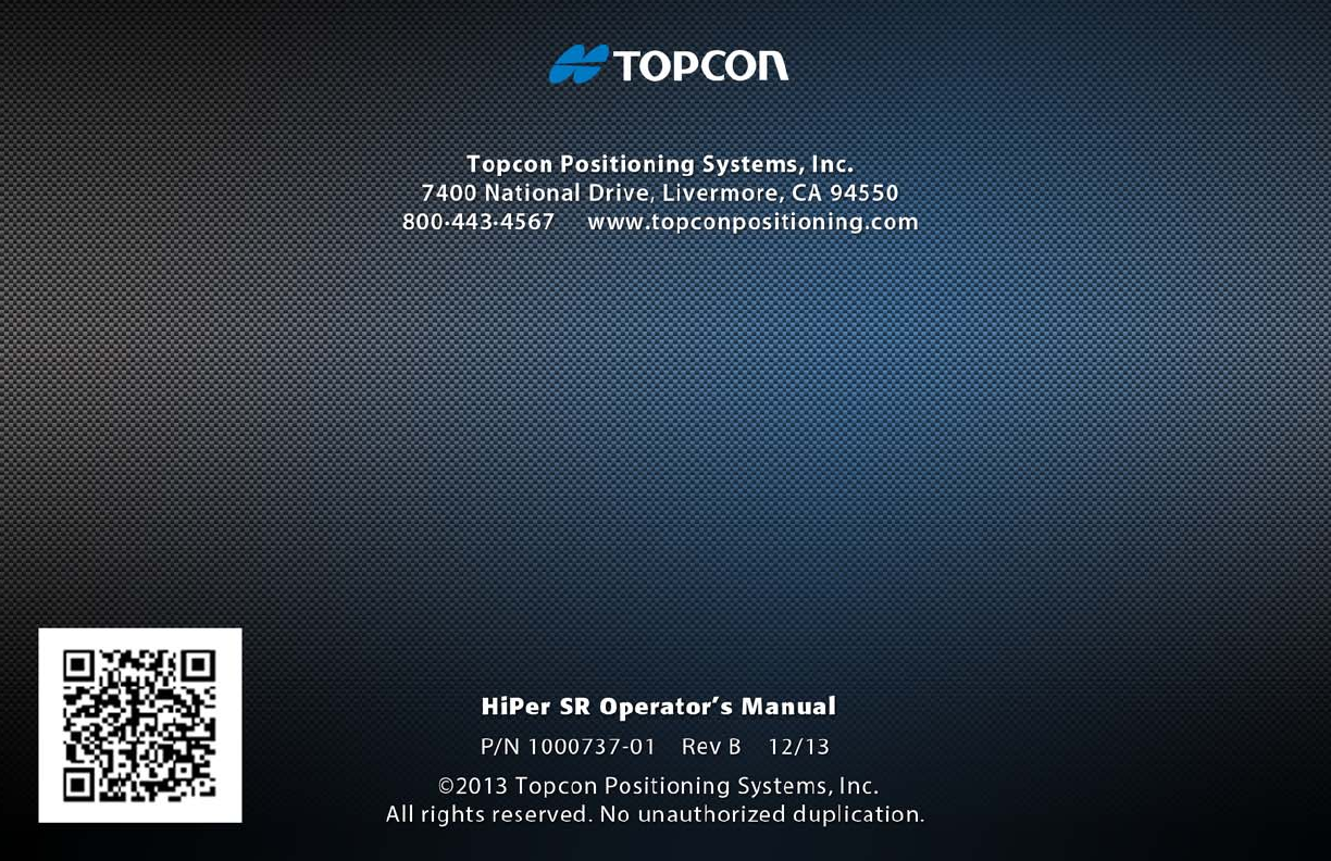 HiPerSR™,TRU™,Magnet™,Pocket‐3D™,Topcon®andTopconPositioningSystems™aretrademarksorregisteredtrademarks