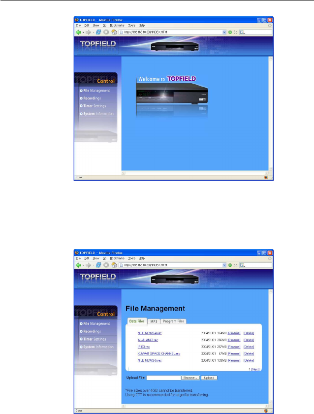 Note that Topfield is not responsible for damages inflicted on files that are stored on the