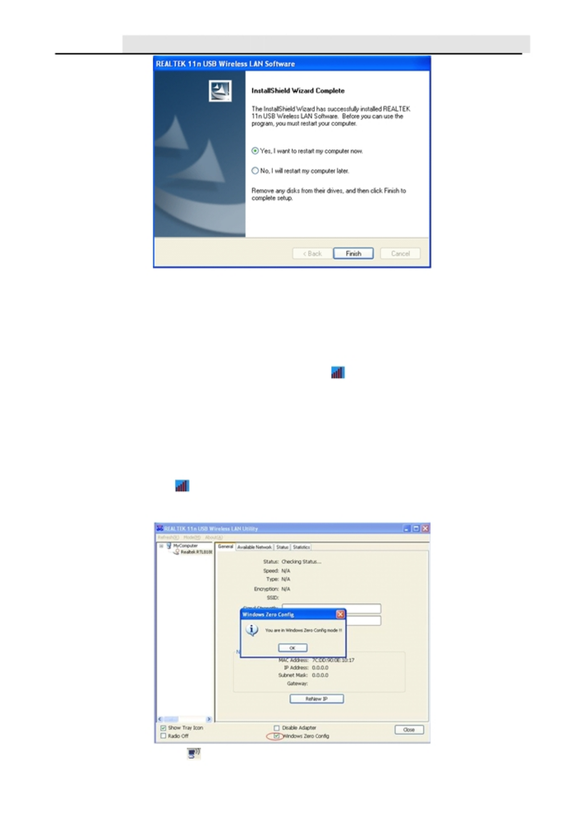 After installation is completed, a wireless configurationutilitywillalsobeshownonthedesktop